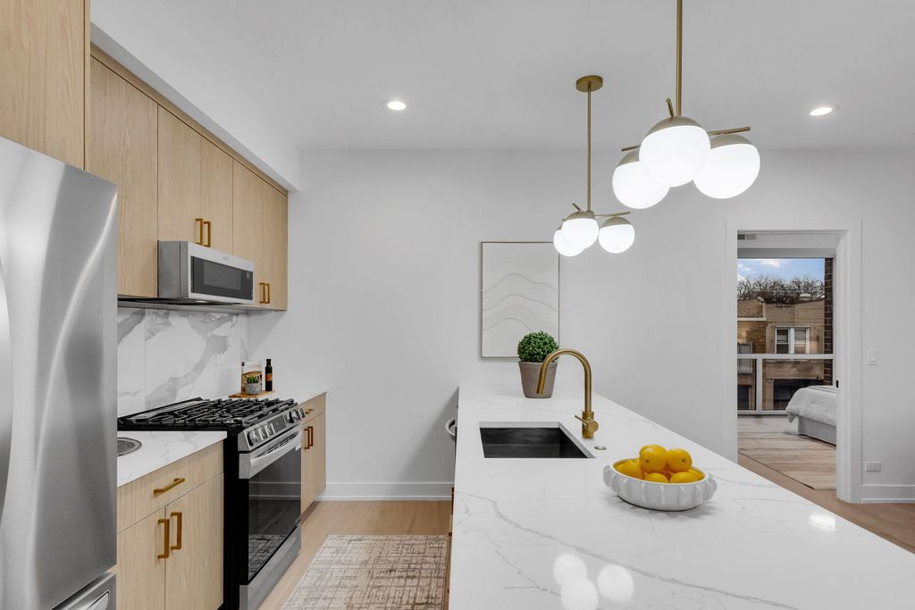 OVER 60 PRCNT SOLD! MOVE IN READY! Introducing 3204 Kostner! You will be blown away by the sweeping views! We are pleased to present one of Avondale/Kilbourn Park's ONLY and its NEWEST condominium development! This best-kept-secret neighborhood has long awaited high-quality new condominium homes and they're here! Come early to select your home from 30 fantastic units. Offering various open, pleasing floorplans in an all-masonry ELEVATOR building. We have a multiple 2 bedroom, 2 baths layouts with different exposures to suit your preference. All of our homes offer premium finishes including real hardwood floors throughout. Each unit has a feature wall in the living room, paneled to add depth and warmth to the space - so beautiful! Gorgeous kitchens with carefully curated design inflections such as quartz countertops, stainless steel appliances. On-trend flat paneled cabinets in a warm ash-blonde tone, stunning lighting fixtures. Early Buyers can select their countertops and backsplash! Baths offer serene opulence reflected in gorgeous porcelain-tiled walk-in showers, double-bowl vanities and built-in soap and shampoo ledges . Each residence offers private outdoor space equipped with a gas line via sizeable balconies; select homes have massive private terraces for those seeking extraordinary outdoor space! There is even a shared, common roof deck! Oversized windows allow abundant natural light to flow in. Many of our units have stunning views of the downtown skyline! Kilbourn Park is a peaceful residential neighborhood while providing immediate and convenient access to all the excitement the city offers! A short hop to the expressway and several public transportation options. Nestled in between booming Avondale and nearby Logan Square, there are endless options of neighborhood eateries and local fare! Come select your new home today! Model on site.