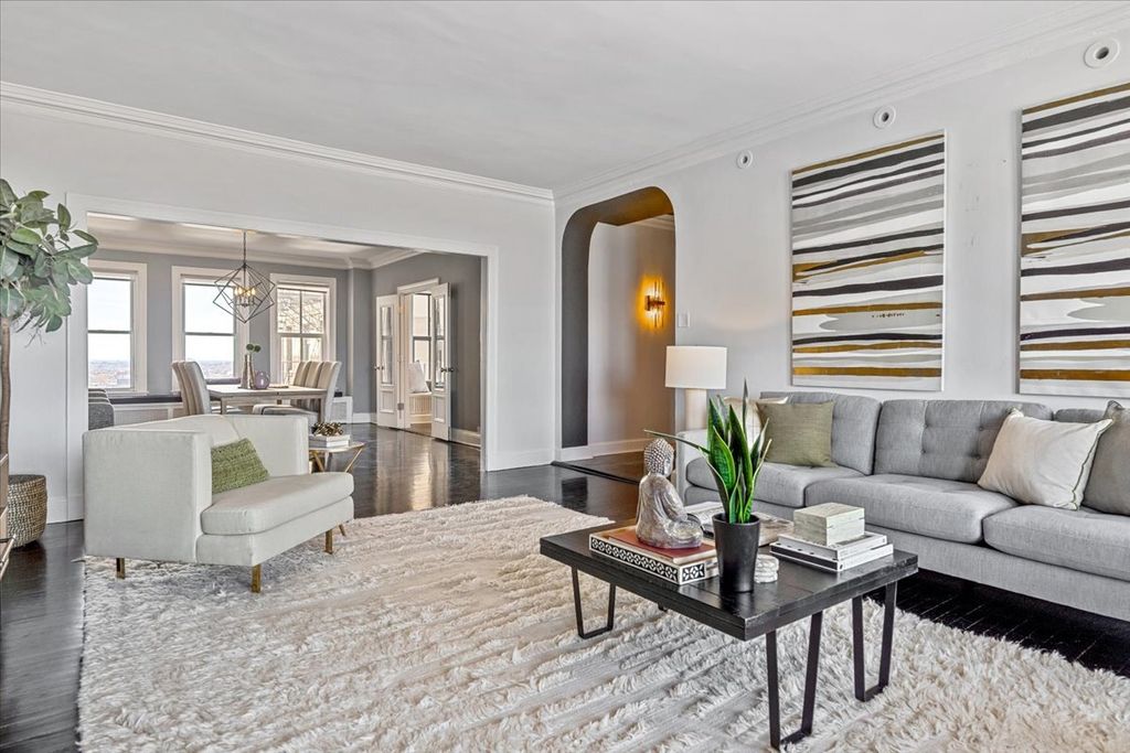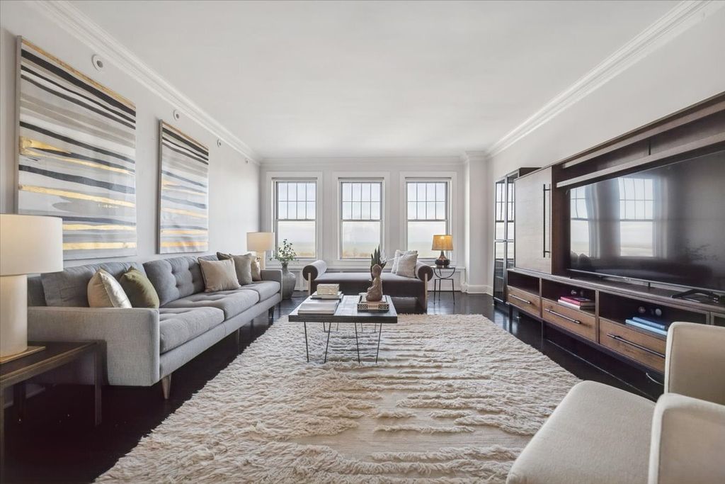 Sweeping views of the lake and Belmont Harbor meets timeless pre-war elegance in this expansive 2 bed + den home. Fully updated with designer finishes, this residence offers the rare combination of historic character, contemporary style, and impressive room sizes throughout. A grand entry hall leads into an oversized living room where the lake becomes your daily backdrop. The adjoining dining room easily accommodates large gatherings, while the den provides a dedicated home office or flex space with an adjacent full guest bath. The remodeled kitchen features premium appliances, abundant prep space, and a stylish pantry/prep area ideal for entertaining and everyday organization. Both bedrooms are exceptionally large, with custom-built closets and thoughtfully designed storage. The primary suite includes a spa-inspired bath with marble finishes and floor-to-ceiling details. Located in a distinguished pre-war building known for its architecture and community, residents enjoy an exercise room, bike storage, and additional storage. Just steps from the lakefront, Belmont Harbor, restaurants, transit, and everything East Lakeview offers. A beautifully updated home with unmatched scale, style, and lake views.