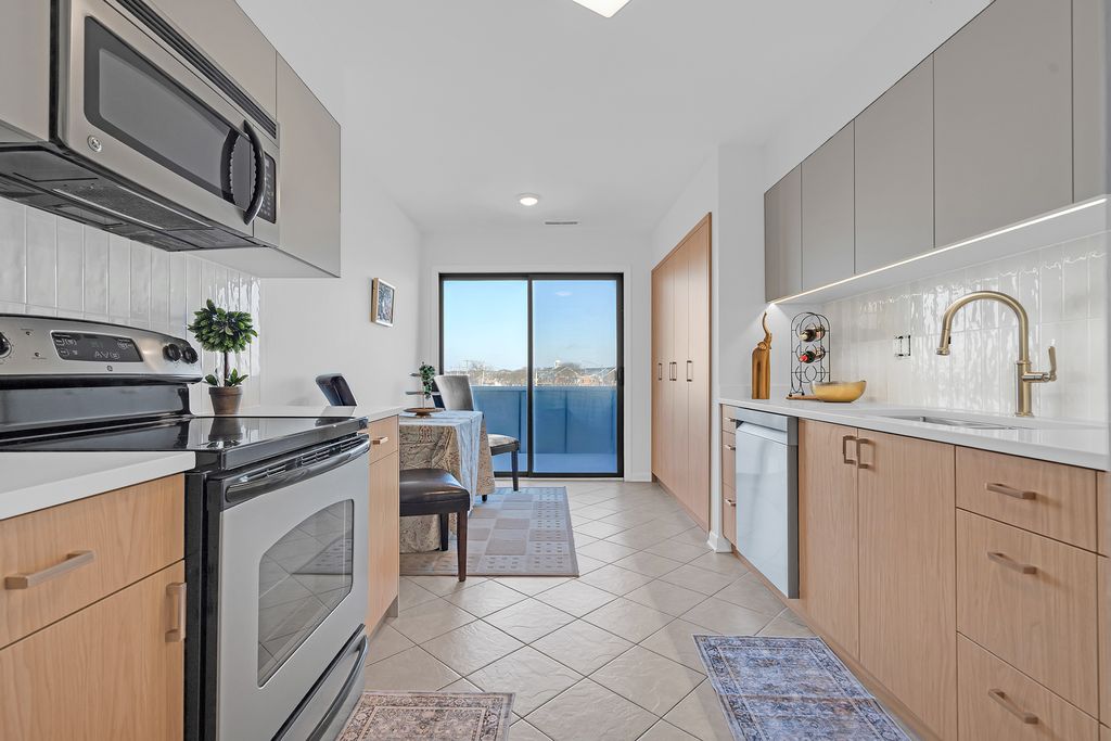 Welcome to this beautifully renovated 2-bedroom condo, perfectly situated in a prime Skokie location with spectacular views of the golf course and the city skyline. This home futures a modern kitchen equipped with extensive cabinet storage, a large family pantry, and a breakfast area perfect for entertaining. The living space include a separate dinning area and spacious living room designated for family relaxation. To ensure a peaceful living environment, the flooring is constructed from sound-absorbing material. The sleeping quarters consist of an oversize master bedroom with an en-suite bathroom and generous walk in closet, alongside a well-proportioned second bedroom offering ample storage. Both bathrooms have been tastefully updated, and the unit provides significant storage throughout with oversized closets. Residents can enjoy the private balcony views or take advantage of the building's amenities, including a sauna located on the same level as unit (4th floor). Laundry facilities are conveniently available on the 2nd and 3rd floors. The location offers excellent access to local shopping, dinning, parks, and trails, as well a ground pool for outdoor activities. Unit comes with garage own parking spot.