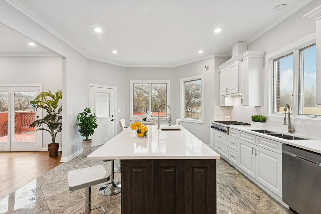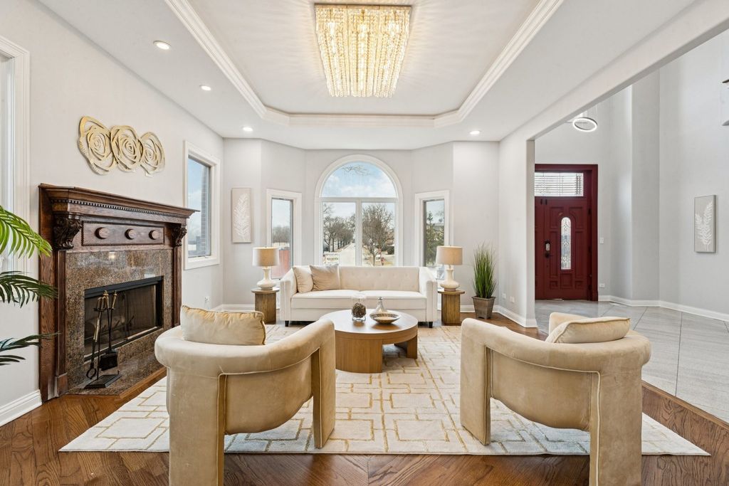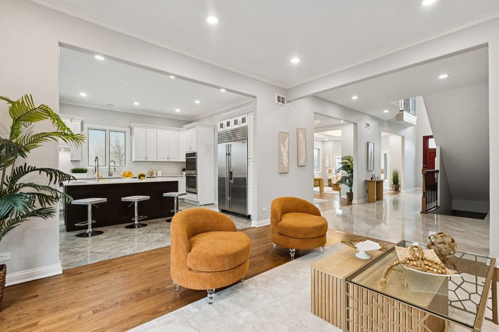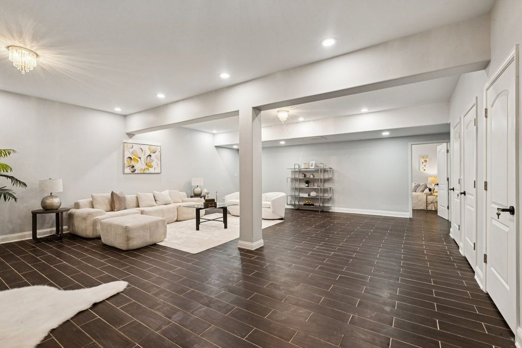 Absolutely incredible newly constructed two-story Colonial offering over 6,000 sq ft of luxurious living space, including a fully finished basement. This stunning home features 8 bedrooms, 7.5 bathrooms, designed with both elegance and functionality in mind. Step into a sun-drenched foyer with soaring two-story ceilings and an abundance of natural light. The main level boasts a formal living room with hardwood floors and a fireplace, seamlessly flowing into a formal dining room-perfect for entertaining. The chef's kitchen is a true showstopper, featuring brand-new white cabinetry, a striking navy blue center island with prep sink, and quartz countertops and backsplash. Ample space for a breakfast table makes this kitchen as practical as it is beautiful. Adjacent is a spacious family room with a second fireplace and direct access to the outdoor deck. The main floor also offers a full bedroom and full bath, a private office, an additional powder room, and the convenience of a laundry area. Upstairs, you'll find 5 generously sized bedrooms, each with its own en-suite bath. The luxurious primary suite features a spa-like bathroom complete with dual vanities, an oversized multi-jet shower, jacuzzi tub, and a custom walk-in closet with organizers. A versatile loft area provides the perfect space for family gatherings, along with a second-floor laundry room for added convenience. The finished basement expands your living space with 2 additional bedrooms, each with attached baths, a massive recreation room, and exterior access-ideal for entertaining or extended living. Additional highlights include a heated 2-car garage, fenced backyard, and a spacious deck. A truly exceptional home offering unmatched space, design, and comfort in this neighborhood.