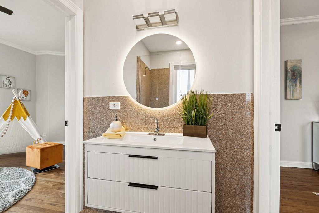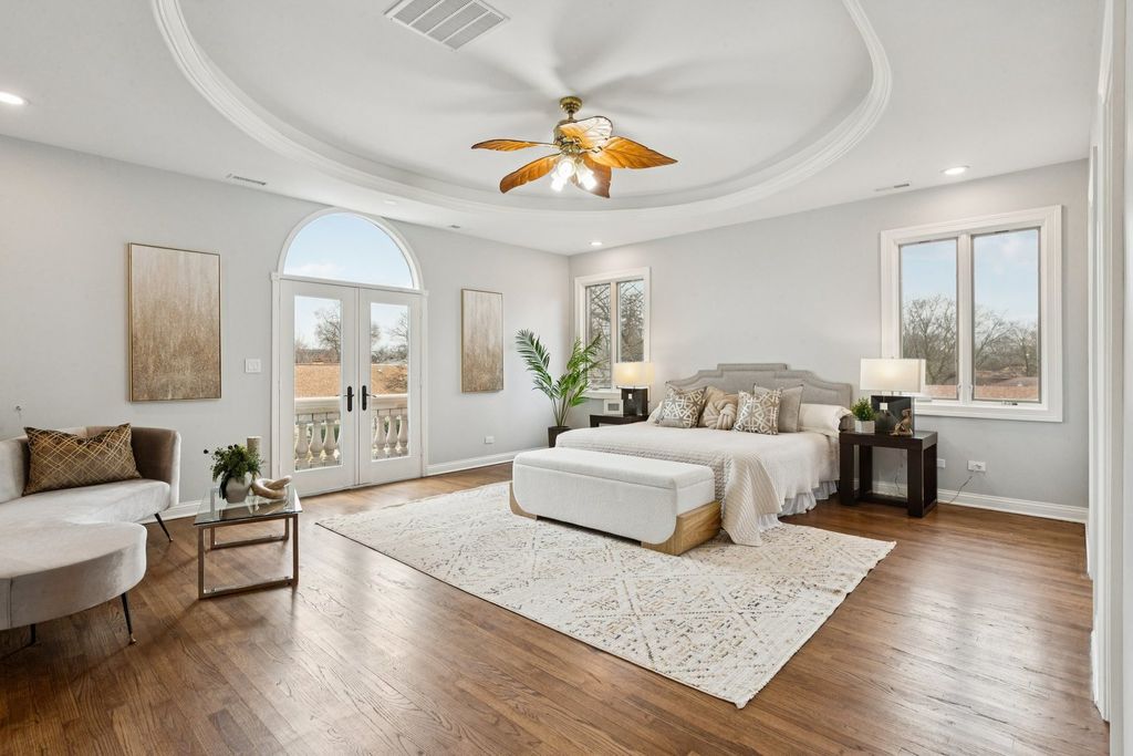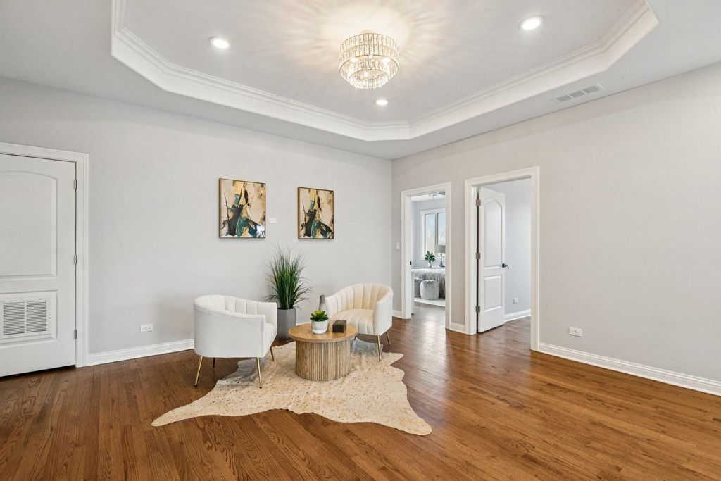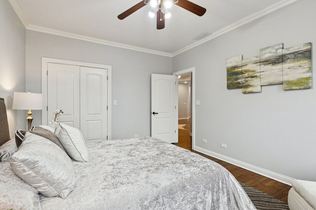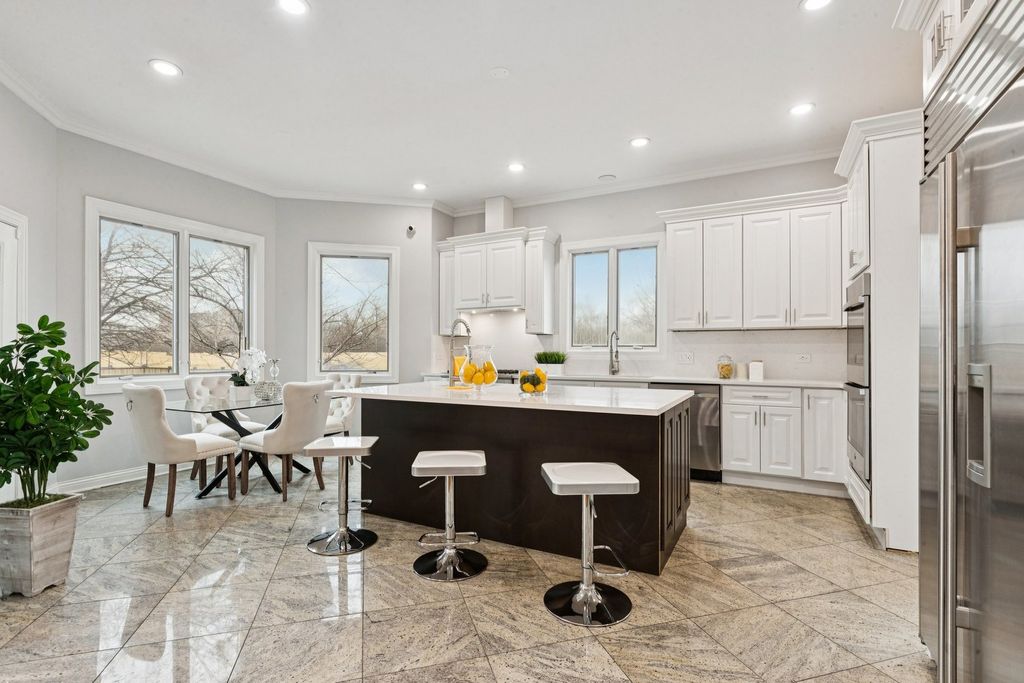 Absolutely incredible newly constructed two-story Colonial offering over 6,000 sq ft of luxurious living space, including a fully finished basement. This stunning home features 8 bedrooms, 7.5 bathrooms, designed with both elegance and functionality in mind. Step into a sun-drenched foyer with soaring two-story ceilings and an abundance of natural light. The main level boasts a formal living room with hardwood floors and a fireplace, seamlessly flowing into a formal dining room-perfect for entertaining. The chef's kitchen is a true showstopper, featuring brand-new white cabinetry, a striking navy blue center island with prep sink, and quartz countertops and backsplash. Ample space for a breakfast table makes this kitchen as practical as it is beautiful. Adjacent is a spacious family room with a second fireplace and direct access to the outdoor deck. The main floor also offers a full bedroom and full bath, a private office, an additional powder room, and the convenience of a laundry area. Upstairs, you'll find 5 generously sized bedrooms, each with its own en-suite bath. The luxurious primary suite features a spa-like bathroom complete with dual vanities, an oversized multi-jet shower, jacuzzi tub, and a custom walk-in closet with organizers. A versatile loft area provides the perfect space for family gatherings, along with a second-floor laundry room for added convenience. The finished basement expands your living space with 2 additional bedrooms, each with attached baths, a massive recreation room, and exterior access-ideal for entertaining or extended living. Additional highlights include a heated 2-car garage, fenced backyard, and a spacious deck. A truly exceptional home offering unmatched space, design, and comfort in this neighborhood.