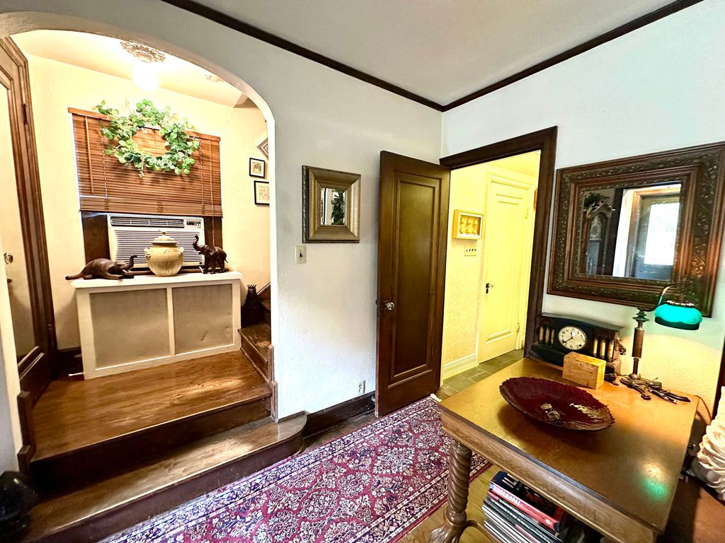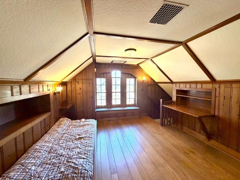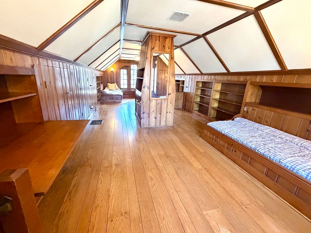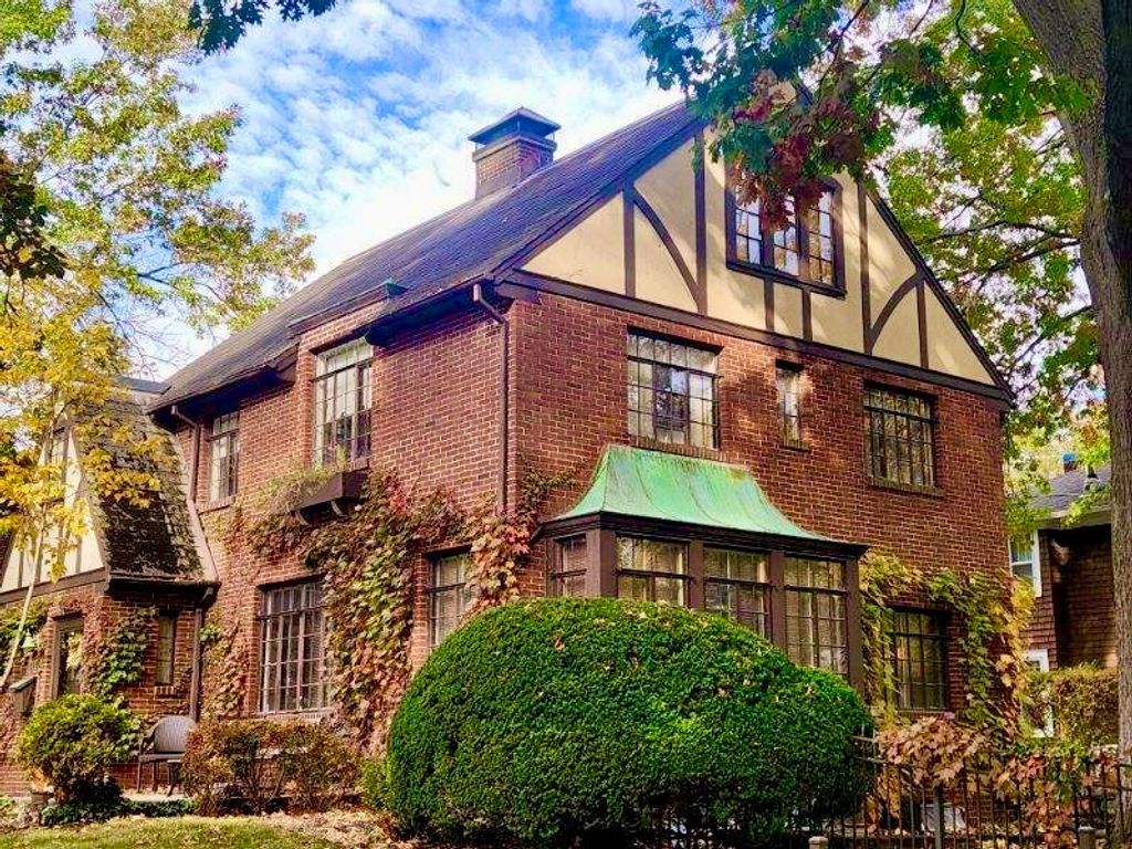 There is classic, timeless charm in this 4-bedroom, 2.5-story brick English Tudor on a fenced, corner lot with a 2-car garage and picturques views of Carle Park. Beautifully landscaped lawn features lots of varieties of Hosta and gorgeous perennials. As soon as you step in, you'll fall in love with the desirable circular floor plan, original trim, hardwood floors, and a huge living room with a fireplace and wood blinds. The kitchen features gorgeous slate flooring, rich butcher block countertops, custom "Woodmode" cabinets with matching wood panels on the Subzero Refrigerator and Bosch dishwasher and also has a beverage frig and an abundance of adjustable shelving in the multiple pantries. The 12 x 34 knotty pine attic (4th bedroom) with random length & width, Pegged Oak floors offers a phenomenal flexible living space with built-in beds, desks, vanity, hutches and open bookcases, and is ideal for a home studio, shared bedroom or office. There is tons of storage throughout the house and it sits on an elevated basement that has the potential to be finished for additional living space. Conveniently located near Carle Clinic, the University of Illinois, and local schools, including Leal Elementary School, this home blends classic character and functional space in a prime location.