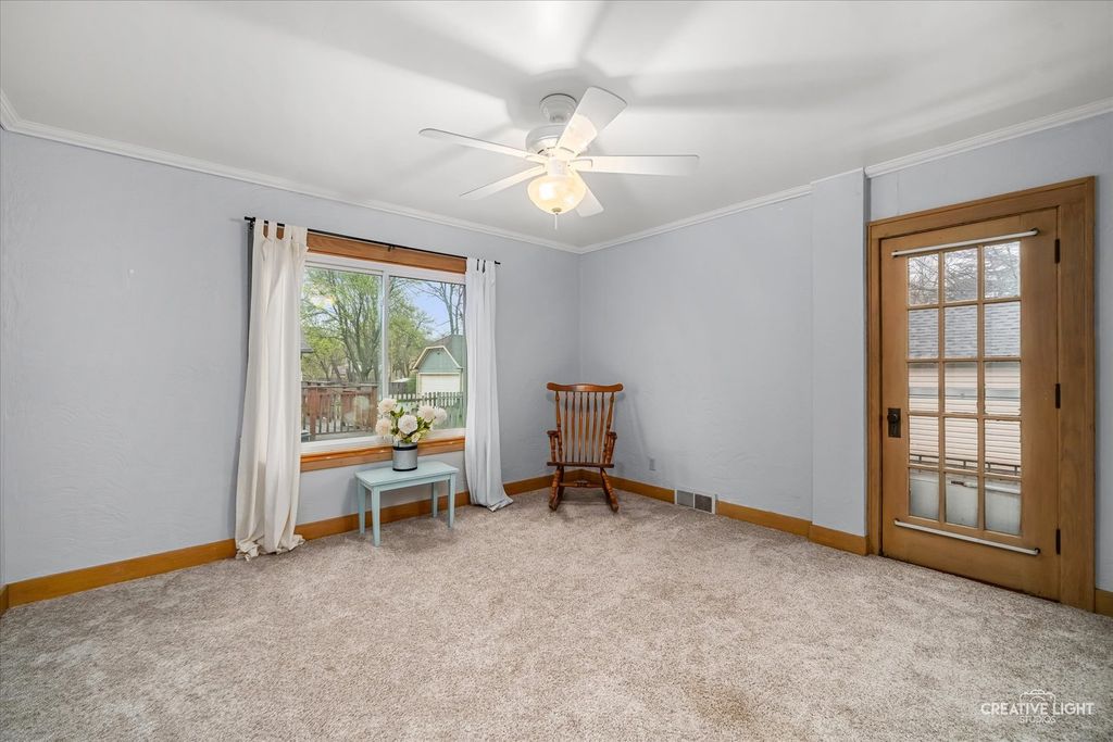 Spacious and well maintained home in an ideal Elgin location. Walk into the coziest home on the block welcomed by a beautiful sun-soaked enclosed porch with a ceiling fan and carpeted floors. The main level features a showstopping fireplace, new flooring throughout, a large primary bedroom with abundant natural light, an oversized closet, and access to a Juliet balcony. The upper level offers two additional bedrooms and a full, generously sized bathroom. The finished basement provides exceptional additional living space, recently Perma sealed and equipped with a kitchenette, laundry room with utility sink, two oversized storage closets, a bar area, a lounge/TV space, and a shower. Notable updates include AC (approx. 7 years), roof & siding (2024), exterior paint (2023), water heater (2024), refrigerator & dishwasher (2025), and fence (2023). Located within walking distance to shopping, baseball fields, and Lords Park, with quick access to I90 just 5 minutes away. Surrounded by excellent neighbors and situated in a highly convenient area.