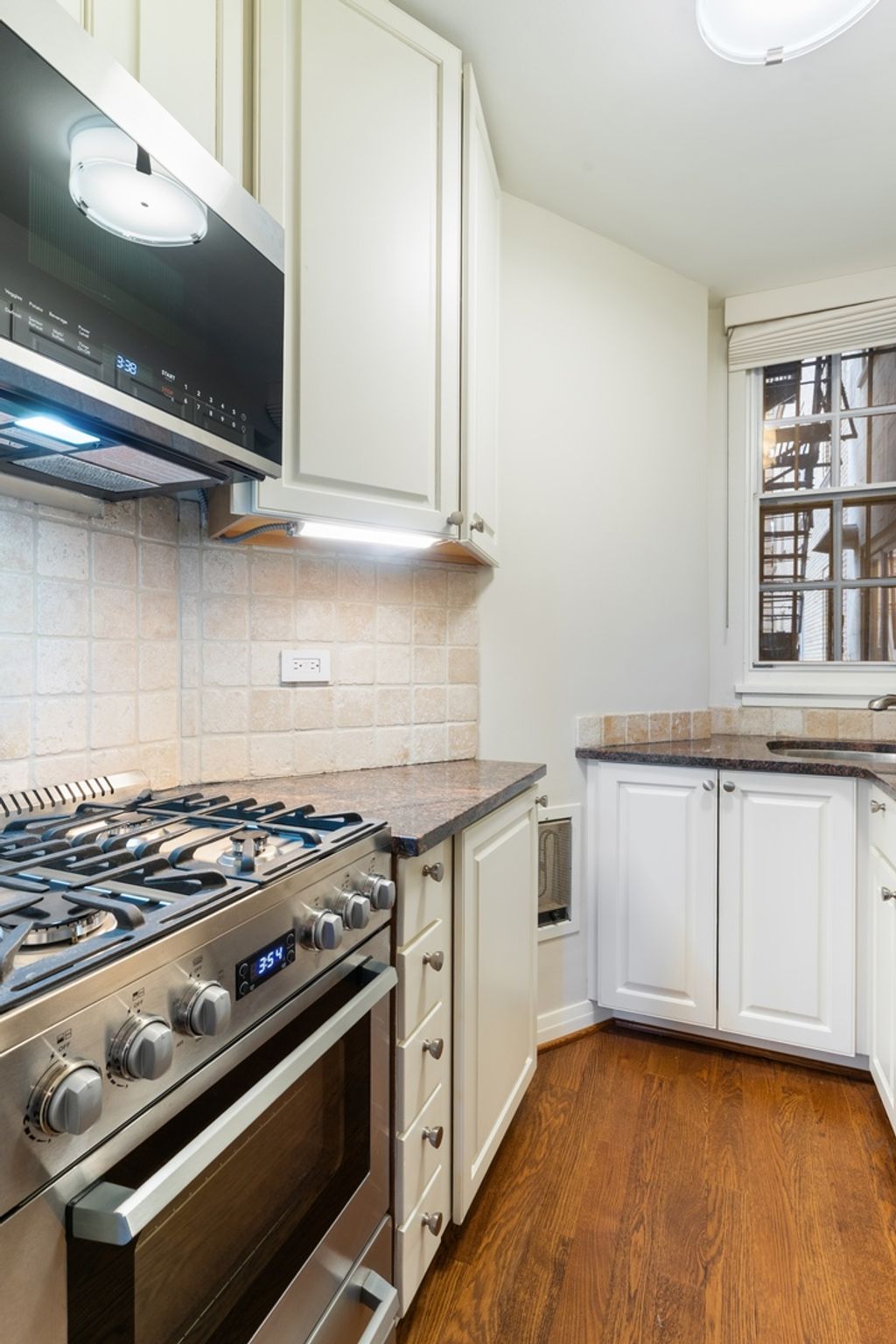 Feel like you're in London or Paris -- despite unusually low HOAs -- when you return home to this elegant 1921 European gem steps from the Lake and Michigan Avenue in Chicago's coveted historic Gold Coast. Turnkey after a meticulous and all-inclusive gut rehab, this bright home offers pre-war charm along with state-of-the-art modern updates: new thermal-pane Pella windows with premium custom shades, solid oak hardwood floors and thick three-panel doors throughout. Solid pre-war, plaster-cement construction ensures a peaceful refuge. The elegant living room features a handsome working fireplace and decorative mantle, a wall of dazzling French bay windows with glimpses of the Lake and Stone Street mansions, and the 9'6" ceilings found in every room. The oversized bay-windowed bedroom offers oak crown molding, a custom-built 9'x 3'x 9' solid oak wardrobe, striking oak ceiling fan, and a nook that can be used as a dedicated work (or relaxing) area. A full bathroom rehab incorporates a 5.5'x3' light-filled window along with spa-like, high-end Kohler shower, vanity, toilet and fixtures, and Robin mirrored inside-and-out medicine cabinet. Not to be outdone, the updated kitchen includes all new appliances and refreshed cabinets, countertops, backsplash and lighting. There is ample storage throughout including a 7'x3'x9' foyer walk-in, customized closet. Owned by out-of-towners who only spent a few days a year in it over the past seven years, the home is in pristine condition. Only three other units share your floor in this nine-story Building lovingly maintained by a long-time onsite husband-and-wife engineer team. Relax or entertain in the award-winning landscaped and outfitted courtyard. Both the lobbies and party room recently have been beautifully redone. The Building's location also enjoys a Walker-Paradise score including biking and transit. There are available nearby garage options and permit street-parking, along with the No. 151 bus a few steps away and the L a five-minute stroll. Imagine walking out your lobby door this summer to a shimmering Lake and Oak Street Beach beckoning along with Rush Street restaurants, Magnificent Mile shopping, cultural and sports attractions, top-tier medical facilities and the 1,200-acre Lincoln Park. Tour this one while it's still available -- it's the antithesis of cookie-cutter.