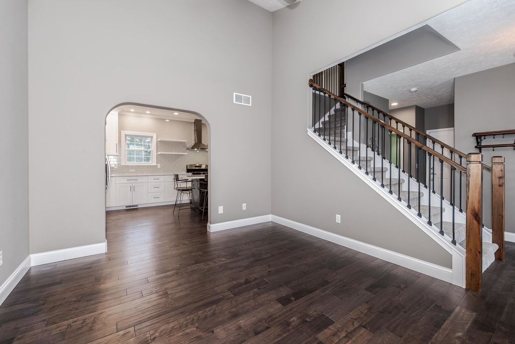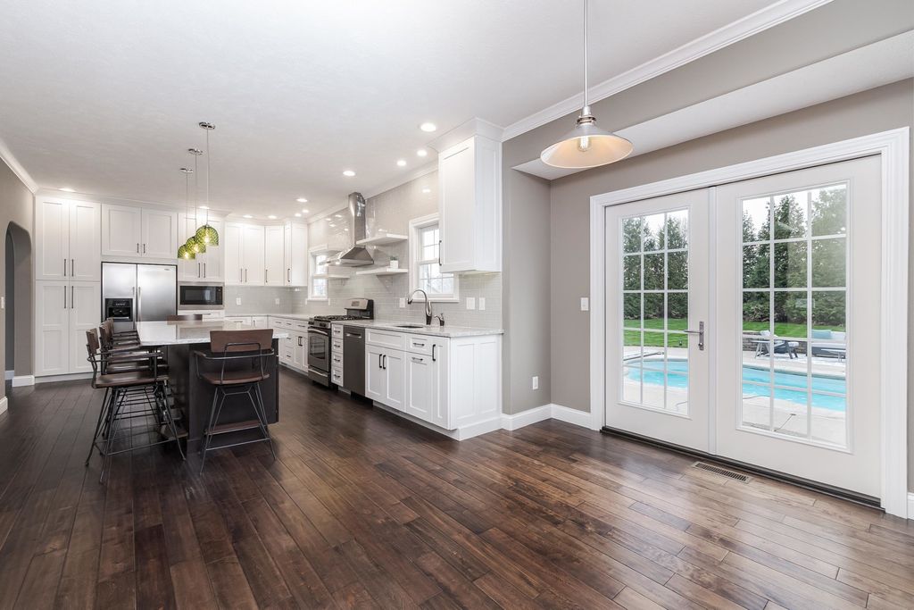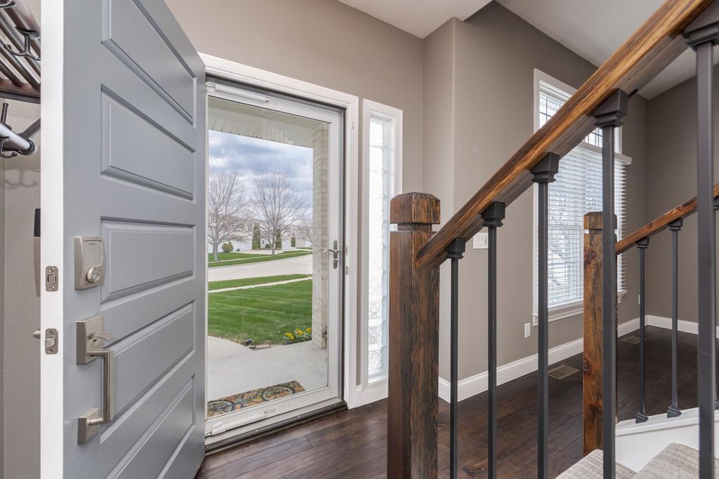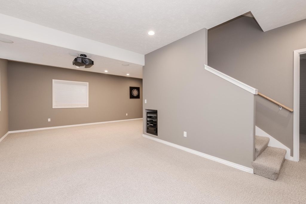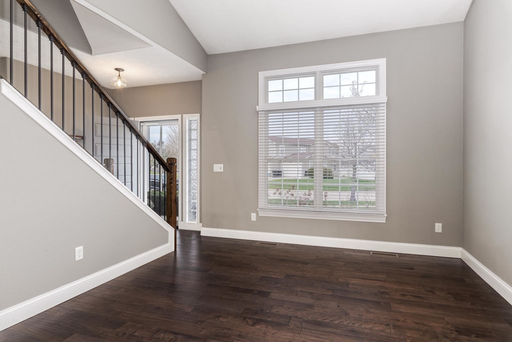 Enjoy living your best life! Stunning POOL home on a huge lot in Gaelic Place Subdivision. Showcase living and entertaining in the back yard with an inground pool! The patio and yard were professionally completed with a curved brick wall that overlooks the private fenced yard, basketball court and firepit. Tons of upgrades. Living room/flex room offers vaulted ceilings and hardwood floors. A recent custom gourmet kitchen features a fabulous 10' island that seats 8, hardwood floors, quartz countertops, stainless appliances, pantry, and dining area. The gas fireplace provides a focal point in the spacious family room. Upstairs: 4 bedrooms, 3 with custom closets and all with newer hardwood floors throughout the upper level. The primary bedroom features a vaulted ceiling, walk in closet, and a complete bath remodel in 2022, with a dual sink vanity, glass enclosed shower, and 2 person jetted bubble tub. The finished basement has an L-shaped family room, an egress window and a full bath, a flex room, plus a great storage room. The storage room has an adjacent mechanical room with built in shelves. New sump pump and backup sump pump with water detect notification feature in 2025, top of the line furnace/heat pump 2024, new tankless water heater 2022. Fenced yard with sprinkler system in front and back yard. New Bosch dishwasher in 2023. New patio doors in 2025. Custom stair handrails made from reclaimed wood in 2022, and newer carpet on stairs. 3 car garage with epoxy flooring. The projection TV with equipment and full screen remain. Pool is approximately 15'x28' with curved sides. All information believed to be accurate but should be verified by buyer.