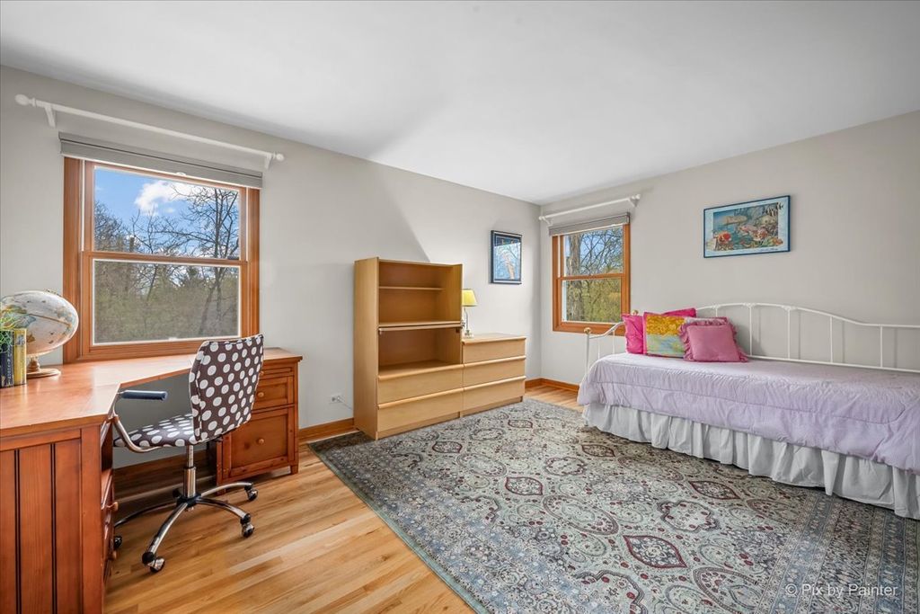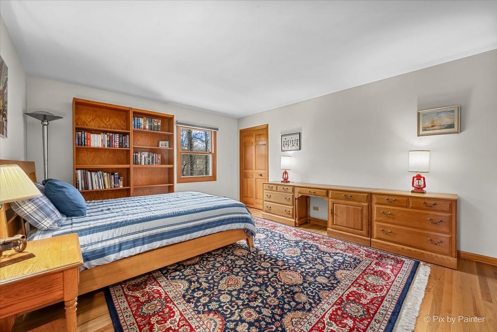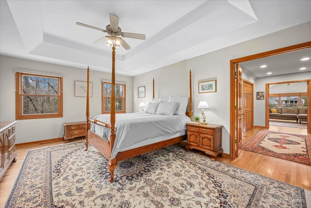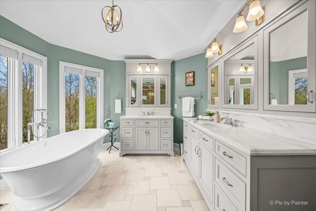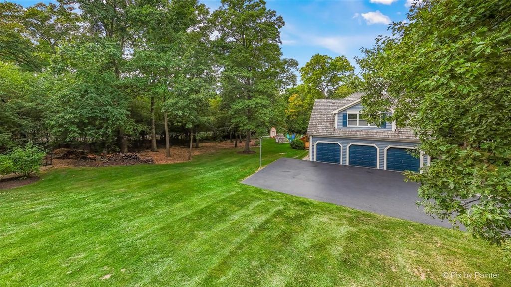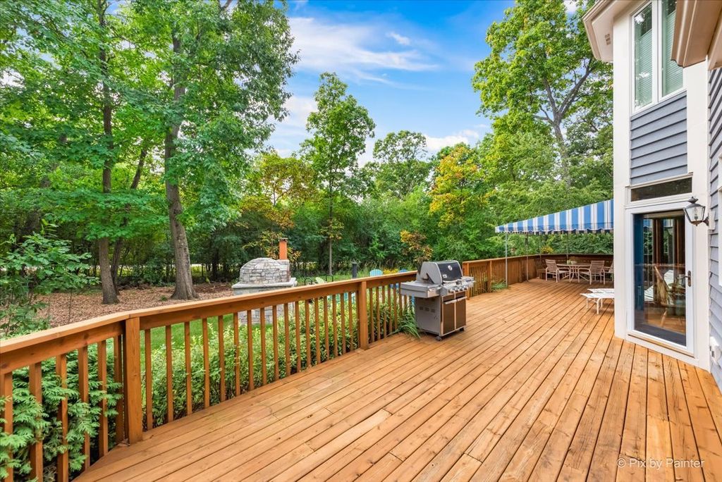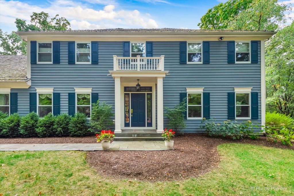 Gorgeous 3,900 sf home set on over an acre of beautiful treed lined property, offering exceptional privacy and a serene, picturesque setting. This impressive home combines timeless design with modern updates, featuring expansive room sizes, an open-concept layout, rich hardwood flooring with 9-foot and volume ceilings to create a warm, light-filled atmosphere throughout. The beautifully remodeled kitchen is a true showstopper, featuring high-end Wolf and Sub-Zero appliances and custom cabinetry. This thoughtfully designed space also boasts an impressive 9-foot island, with generous prep and gathering areas that seamlessly flow into the main living areas. Every bathroom in the home has been tastefully updated with high-end finishes. The luxurious primary suite serves as a true retreat, highlighted by a spa-inspired bath featuring dual marble vanities, a glass-enclosed shower with separate soaking tub and heated marble flooring - designed for ultimate relaxation. The primary bedroom features a dressing room area with 2 walls of closets. Just off the primary suite, a spacious private home office addition provides a quiet, convenient workspace - ideal for today's lifestyle. The finished basement expands the home's versatility, offering additional living/recreation space along with abundant storage and a Lg cedar closet. Outdoors, the experience continues with the spacious deck and patio - complete with built-in pizza oven - and fire pit, all overlooking the beautiful tree-lined yard, great for entertaining. High end finishes throughout this meticulously maintained home!