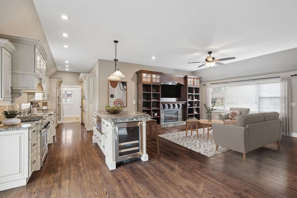 Prepare to be amazed by this all-brick, truly remarkable home perfectly situated on a quiet, mature street in unincorporated Lockport. Meticulously maintained with an unmatched attention to detail, this home stands out from the moment you arrive. The main level offers a spacious, open floor plan that is both functional and inviting, filled with natural light and finished with real hardwood floors that continue throughout both levels of the home. The living area features a cozy electric fireplace with stunning custom built-ins, creating a warm and elevated focal point. The kitchen is a true showpiece, complete with high-quality custom cabinetry, granite countertops, an oversized eat-in island, and a separate dining area-perfect for everyday living and entertaining. The main level primary suite is a private retreat, featuring a beautifully designed en suite bathroom with a jacuzzi tub, separate glass and tile walk-in shower, and thoughtful finishes throughout. A convenient first-floor laundry room is located just off the garage, along with a stylish half bath. One of the most unique features of the home is the cedar-lined dual closet with custom built-ins and granite countertops-both functional and impressive. Upstairs, you'll find a versatile second living space that can easily serve as a family room, playroom, office, or flex space to fit your needs. Two generously sized bedrooms offer custom closets with built-ins and ample storage. The second full bathroom is equally impressive, featuring a soaking tub, separate Corian walk-in shower, and double vanity. Step outside to a fully fenced backyard that feels like your own private retreat. The expansive brick paver patio, custom brick fireplace with granite tops, and serene pond with waterfall create the perfect setting for entertaining or relaxing. Natural gas grill and a storage shed adds even more functionality to the outdoor space - plus a WHOLE HOUSE GENERATOR! The attached garage is finished with epoxy flooring and includes built-in storage cabinets, a sink, fridge, and convenient side door access. The extra-wide driveway features an additional concrete parking pad alongside the garage-ideal for extra vehicles, a boat, or RV. A clean and easily accessible 3-foot concrete crawl space provides even more storage options. Ideally located with close proximity to shopping, dining, and entertainment in both Lockport and Lemont, with easy access to I-355, nearby golf courses, and forest preserves-this location truly offers the best of everything. Between the quality of the home and the unbeatable location, this is one you won't want to miss.