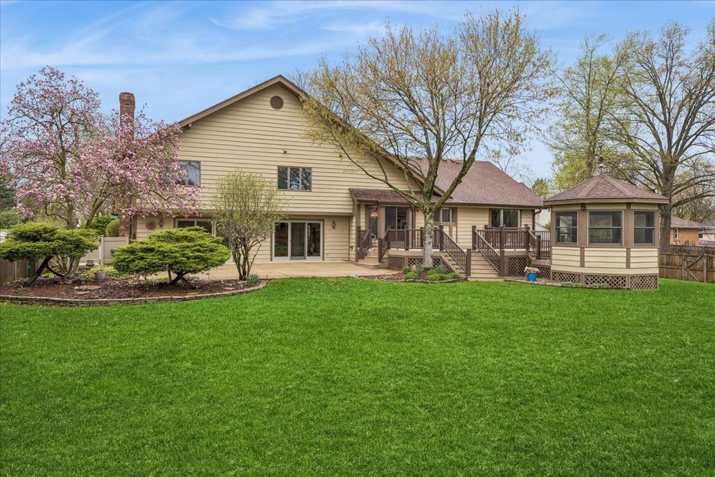If you've been searching for space, flexibility, and something truly unique, this one-of-a-kind 4-bedroom, 4-bath well maintained home delivers. Nestled on a sprawling lot and set back from the road, it offers a peaceful, country-like setting while remaining just minutes from schools, downtown Downers Grove, and major highways. Designed with versatility in mind, this home features four finished levels plus a sub-basement, providing endless opportunities for both everyday living and entertaining. The main level showcases a formal living room with soaring ceilings, oversized dining room with windows that flood the spaces with natural light, creating an open, airy feel. The kitchen is the heart of the home, offering abundant storage and a generous eating area overlooking the expansive backyard-perfect for hosting gatherings of any size. Upstairs, you'll find four well-appointed bedrooms, including a spacious primary suite with a private bath. The first lower level features a massive family room anchored by a stunning stone fireplace, along with additional flex space ideal for a game room or potential fifth bedroom. A large office provides the perfect work-from-home setup, with the option to convert into a mudroom, hobby space, or more. The basement is built for entertaining, complete with a recreation room, bar area, full bath, and oversized laundry room. A fifth-level sub-basement offers exceptional storage or the opportunity to create a custom space tailored to your needs. Step outside to your own private retreat. A large composite deck overlooks a sprawling fully fenced backyard with ample room for a pool, gardens, or play areas, while a screened gazebo provides the perfect spot to relax and enjoy sunset views. Hobbyists will appreciate the oversized outbuilding, equipped with electricity and generous workspace. This incredible building is perfect for lawn and gardening equipment or can be transformed for additional entertaining space. The attached expansive 3 car garage is perfect for the car enthusiast. With its rare combination of space, functionality, and serene setting, this exceptional property is ready to be your dream home.