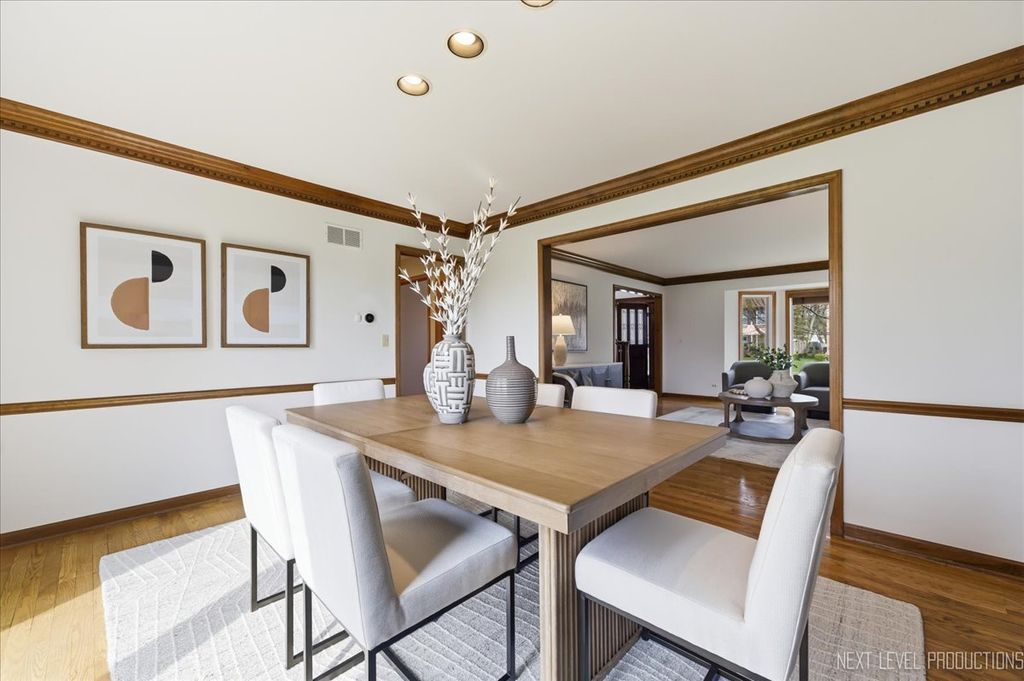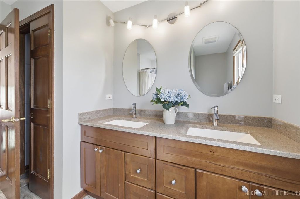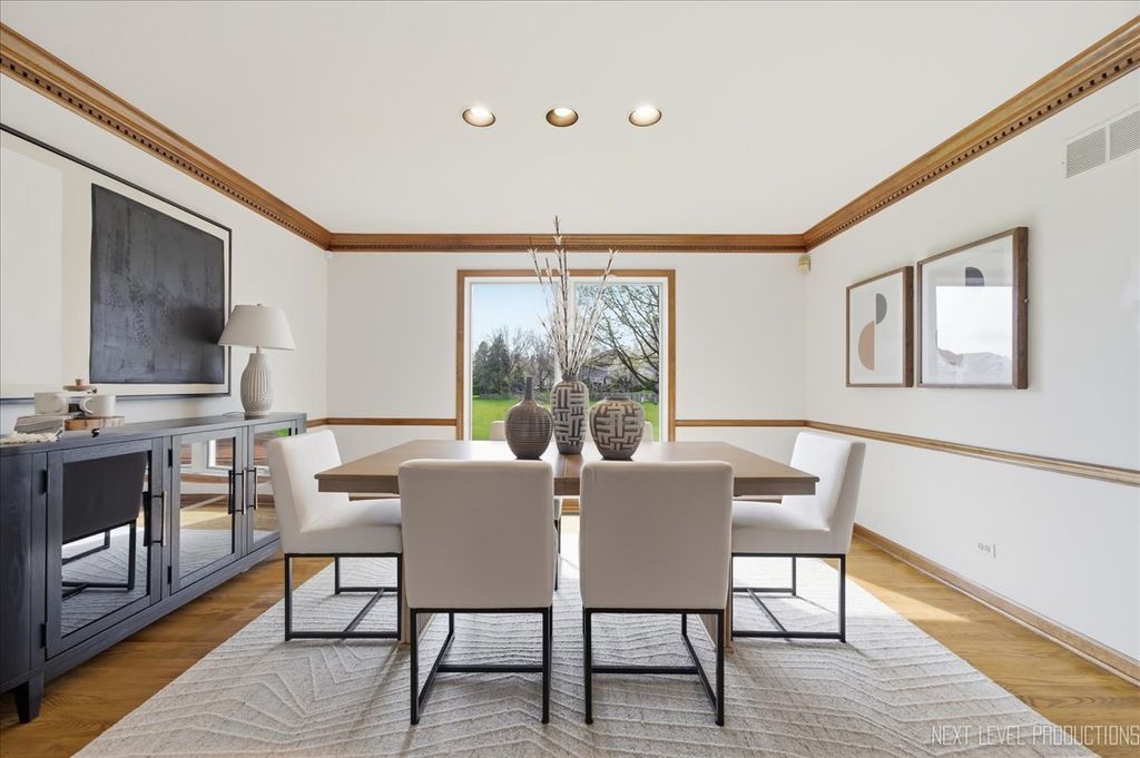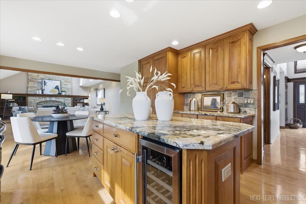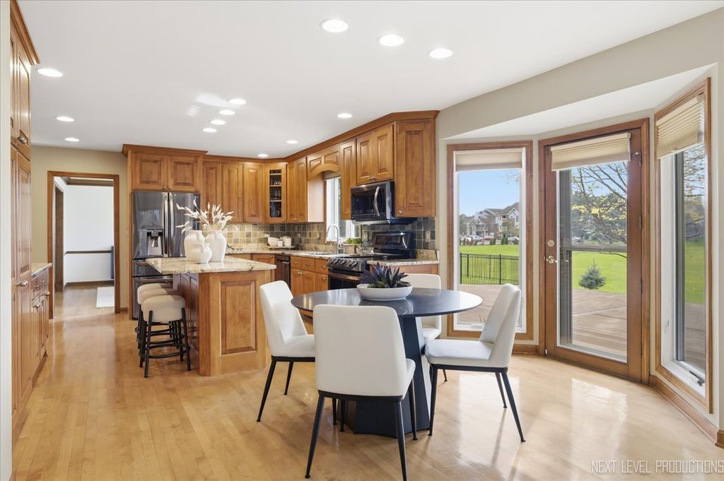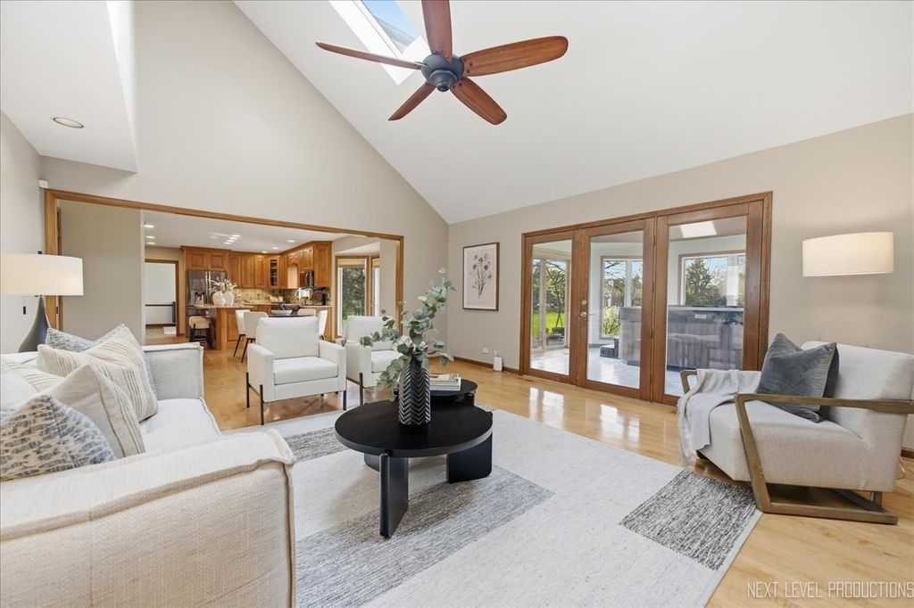 Located in the highly coveted Danada East neighborhood, this exceptional home is set on a premier lot backing to open green space, offering both privacy and picturesque views. From the moment you arrive, the home's charming curb appeal makes a lasting impression. Inside, thoughtfully designed living spaces blend sophistication with comfort. A private first-floor office provides the ideal work-from-home space, while the formal living and dining rooms are perfect for entertaining and holidays. At the heart of the home, the beautifully updated kitchen is both trendy and functional, featuring stainless steel appliances, a pantry, and a wine refrigerator. The table space overlooks a large deck and a beautiful view of the backyard. The seamless flow and open view into the family room features a two-story stone fireplace flanked by bookcases and flooded in natural light from skylights above. Cuddle in and enjoy a warm, cozy ambiance. The true four-season sun porch, complete with a hot tub, offers a tranquil escape. Upstairs, the luxurious primary suite serves as a private sanctuary. The primary bath has a separate dressing area, two walk-in closets, a deep tub, and an oversized luxury shower. Three additional bedrooms are generously sized, with large closets and each filled with natural light. The finished lower level extends the home's living space, making it ideal for movie nights, entertaining, workouts, and your favorite hobby. The professionally landscaped backyard is truly one of the finest in the neighborhood-expansive, private, and perfectly suited for entertaining or quiet relaxation. Recent upgrades include new windows (2023), roof (2023), and furnace (2024). Award-winning District 200 schools-Wiesbrook Elementary, Hubble Middle School, and Wheaton Warrenville South High School-this home offers a rare opportunity to enjoy one of the area's most desirable communities. Available to be conveyed with the home: hot tub, pool table, basement exercise equipment, basement refrigerator & office furniture.