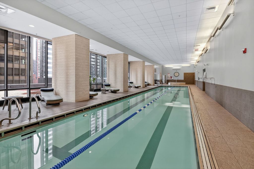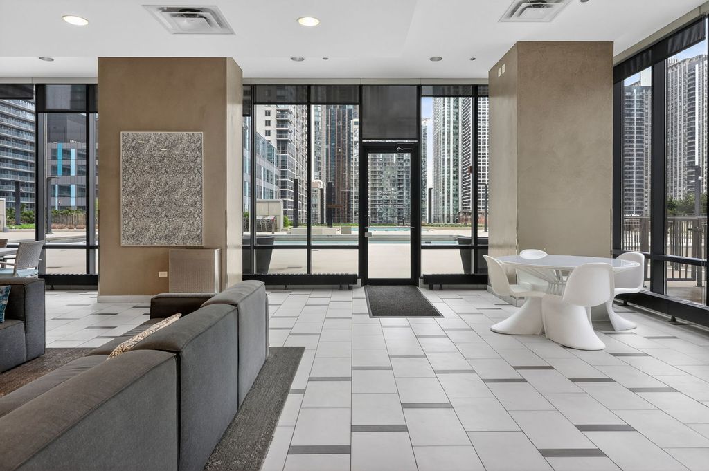Contemporary large one bedroom unit at Aqua-resort style living. Live in fabulous Aqua with great southern views overlooking the Lake, the Millennium park, and the city. Designer one bedroom with one bath unit finished with hardwood floor, granite kitchen. Floor to ceiling windows, gourmet kitchen with stainless steel appliances, dishwasher, garbage disposal, and in unit washer and dryer. This is a full amenity luxury building: indoor and outdoor lap pools, large sundeck, beautiful club house, conference rooms, and state of the art gym, sauna and steam rooms, whirlpool, game rooms, and running track. 24 hour door staff, on site manager Monday through Friday. The unit was freshly painted throughout and professionally cleaned!