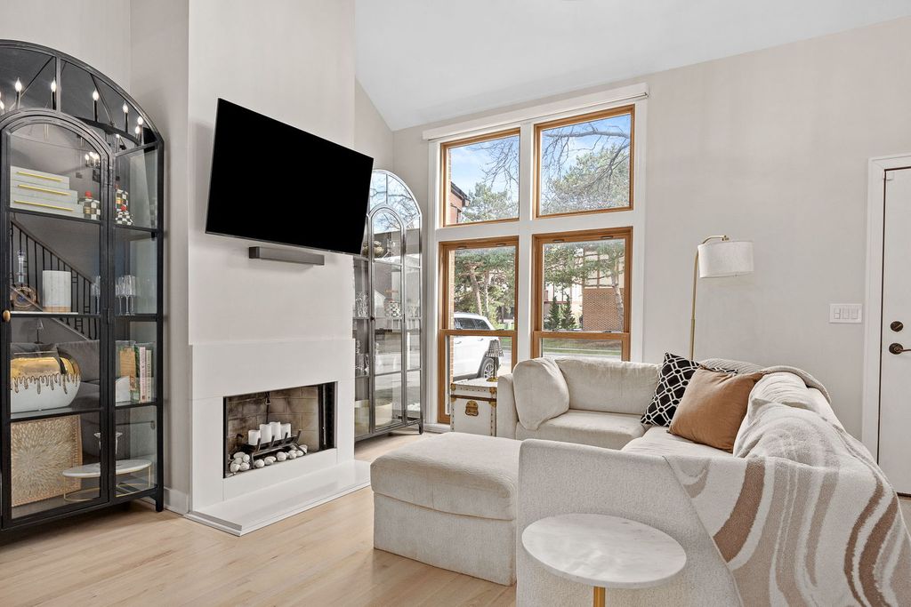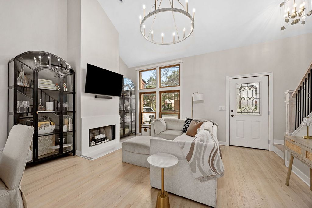 Welcome home to this beautifully rehabbed Carlton model townhouse offering 3 bedrooms, 2 full bathrooms, and an impressive two-story layout designed for modern living. From the moment you step inside, you're greeted by a dramatic staircase featuring a refined iron baluster railing, light wood treads, and gleaming hardwood floors that flow throughout the main level. The soaring two-story living room is an entertainer's dream, anchored by a striking fireplace and bathed in natural light, all beneath a stunning large chandelier that commands the space. An open iron-rail hallway overlooks the living area below, adding to the home's airy, upscale feel. The living room opens to the dining room and fully renovated kitchen. The kitchen is a true showpiece, boasting white shaker cabinetry extending to the ceiling, a large quartz island with seating, marble-look tile backsplash, stainless steel appliances including a gas range with custom hood and French door refrigerator, and eye-catching crystal pendant chandeliers, a perfect blend of elegance and function. Step outside to your private patio retreat, surrounded by a lush, serene wooded landscape that provides the ideal backdrop for morning coffee or evening relaxation. The primary bedroom suite upstairs features beautiful hardwood floors, a private balcony with sliding glass doors overlooking the peaceful greenery, and a spacious walk-in closet. The updated primary bath offers a dual-sink dark vanity, twin round mirrors with Hollywood-style lighting, and a walk-in shower. The converted loft, now a true bedroom complete with a closet, adds incredible flexibility for guests, a home office, or a nursery. A third bedroom on the main level sits adjacent to a fully updated full bath with a sleek walk-in tiled shower. All of the closets have fully updated and customized closet systems with built-in organization by Closets by Design. Additional highlights include first-floor laundry, an attached garage, and ample storage throughout. Every detail of this home has been thoughtfully updated, just move in and enjoy. Set in a prime Westchester location, this home puts everything within easy reach, Mayfair Park, the Westchester Community Pool, and the Mayfair Recreation Center are all nearby, as is the renowned Oakbrook Center for shopping and dining. The home is located within District 92.5, with the Westchester Park District and Village Hall just minutes away. Commuters will love the quick and convenient access to major expressways. This is the complete package, style, space, and an unbeatable location. Schedule a showing today!