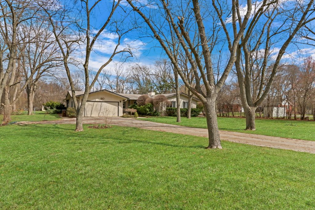 Welcome Home to this absolutely exceptional property nestled in sought-after Thornbury Village, where timeless charm, thoughtful updates, and breathtaking natural surroundings come together to create a truly one-of-a-kind home. This stunning 3-bedroom, 3.5-bath sprawling ranch offers the ease and convenience of true one-level living, all set on an incredible ~1-acre lot surrounded by lush, mature landscaping that creates a private, serene backyard retreat. From the moment you arrive, you are greeted by a charming front patio-perfect for morning coffee or evening relaxation-setting the tone for the warmth and beauty that awaits inside. Step through the doors and you are immediately welcomed by an abundance of natural light streaming through expansive windows and patio doors that seamlessly connect the indoor living spaces to the stunning outdoor oasis. Inside, the home showcases rich cherry wood cabinetry and custom built-ins, adding warmth, character, and timeless craftsmanship throughout. The spacious living and dining rooms are anchored by a striking stone fireplace, creating an inviting and elegant setting for both everyday living and memorable gatherings. The beautifully designed kitchen is a true standout, featuring abundant cabinetry, sleek black countertops, stainless steel appliances, a convenient breakfast bar, and a sunny eating area that overlooks the picturesque backyard-making every meal feel special. Just beyond, the vaulted family room is a showstopper, offering soaring ceilings, plush new carpeting, and an open, inviting atmosphere that is perfect for relaxing or entertaining. The primary suite provides a peaceful retreat, offering generous space to unwind along with a private en suite bath that has been thoughtfully updated, including a stunning glass-enclosed shower. Two additional spacious bedrooms and well-appointed bathrooms provide comfort and flexibility for family, guests, or home office needs. Updated baths, new carpeting, and a newer roof ensure this home is not only beautiful but truly move-in ready. The full basement offers endless potential to create the space you've always envisioned-whether it be a recreation room, home gym, office, or guest suite-while still providing ample storage and functionality. A two-car garage completes the home's impressive list of features. Outside, the expansive yard feels like your own private escape, offering the perfect backdrop for entertaining, gardening, or simply enjoying peaceful evenings under the trees. Ideally located in the highly desirable Libertyville/Green Oaks area with access to top-rated schools, this home presents a rare opportunity to own a ranch property that combines space, privacy, and incredible potential. With its perfect blend of comfort, elegance, and setting, this is truly a home that does not come along often.