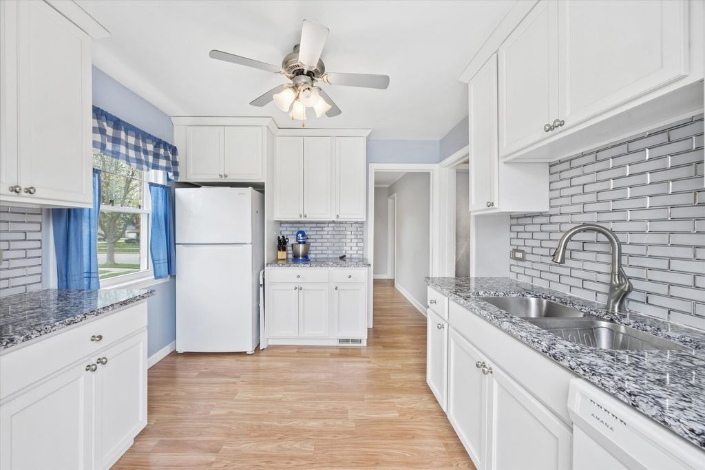 3 bed, 1 bath brick home with FIRST-FLOOR BEDROOM, finished basement, updated kitchen, and extensive mechanical upgrades. Move-in ready property featuring a bright living room, separate formal dining room, and a functional layout designed for everyday living and entertaining. The updated kitchen (2017) offers modern finishes and connects seamlessly to the main living spaces. A first-floor bedroom provides added convenience and flexibility. The finished basement expands the living area-ideal for a recreation room, home office, or guest space. Spacious backyard perfect for outdoor entertaining and relaxation. Recent improvements and key features include brand-new windows (2024) and abundant natural light throughout. Major updates (chronological): roof (2011), oven (2016), dishwasher (2017), microwave (2017), kitchen update (2017), furnace (2018), A/C (2021), air cleaner (2024), refrigerator (2024), windows (2024). Well-maintained home offering strong value with updated systems, flexible living spaces, and excellent indoor-outdoor flow. Ideal for buyers seeking a move-in ready brick home with modern upgrades and versatile layout options.