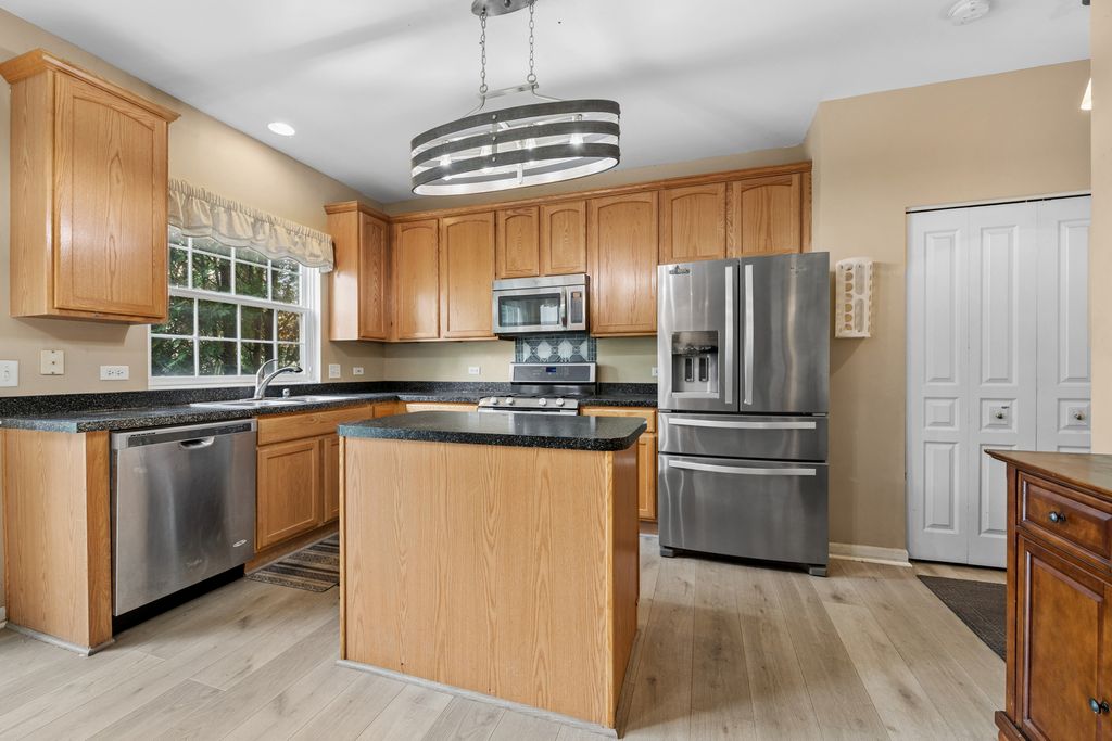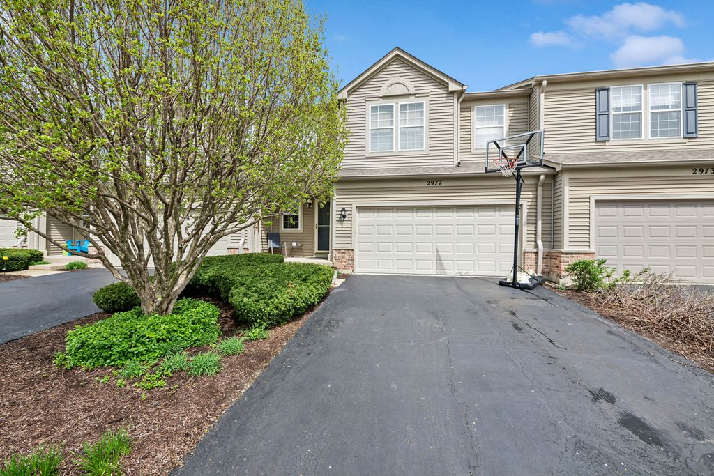 Welcome to 2977 Peachtree Cir, a well-appointed 2-bedroom, 2.5-bath townhome with a loft located in the desirable Country Club Village of Aurora. Built in 2001, this 1765 sq ft home features soaring two-story foyer, an open living room with gas fireplace, and an integrated dining area and kitchen. Upstairs, the primary suite offers vaulted ceilings, a spacious walk-in closet, and a private en-suite bathroom with soaking tub and a separate shower. A versatile open loft can serve as a 3rd bedroom, office, or flex space. Second-floor laundry means no more hauling baskets up and down! The fully finished basement features a large recreation room, ideal for guests or media room. Washer/Dryer (2016), water heater (2020), furnace (2021), A/C (2021). HOA covers all exterior maintenance, lawn care & snow removal. Walking distance to Brooks Elementary & Granger Middle School; just 1 mile to Metea Valley High School (District 204). Minutes to I-88, Metra Route 59 Station, Aurora/Chicago Premium Outlets & downtown Naperville. No rental cap - investor-friendly!