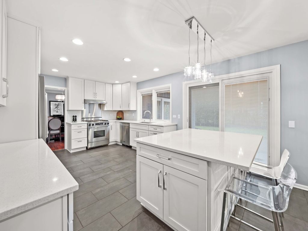 The layout strikes that rare balance: open when you want it, defined where you need it, and designed to feel as good as it looks. A polished foyer with porcelain tile and generous storage sets the tone, leading into sunlit living and dining spaces with crown molding and clean, timeless finishes, equally suited for hosting or just hanging out. The kitchen anchors the home with quartz countertops, a penny tile backsplash, and a premium appliance package, all centered around an island that naturally becomes the place everyone gathers. From there, the eating area and expansive family room, with a gas-start fireplace, flow effortlessly out to the patio, while a separate great room with its own access to the yard gives you flexibility to spread out, entertain, or reimagine the space entirely. A true main-level office, complete with built-ins, offers a great work from-home setup, and the mudroom/laundry area is exactly where you want it, functional, tucked away, and with direct access outside. Upstairs, the huge primary suite delivers on both space and storage, with multiple closets including a well-organized walk-in, and an en suite bath featuring dual vanities, a Whirlpool tub, and a steam shower that feels like a daily escape. Three additional bedrooms are well-proportioned with thoughtful storage, supported by updated, stylish hall baths. The finished lower level adds even more versatility with a large recreation space, built-ins, and plenty of storage, ideal for movie nights, workouts, or play. With key updates already handled, including mechanicals, roof, and a renovated kitchen, this is a move-in ready home. Set on a property with a concrete driveway and inviting outdoor space, it's the kind of home that simply works. Best of all, it is located in District 30 with award winning schools, a stone's throw to Greenview Park and just minutes to shopping, dining, entertainment, highway, Metra and more!