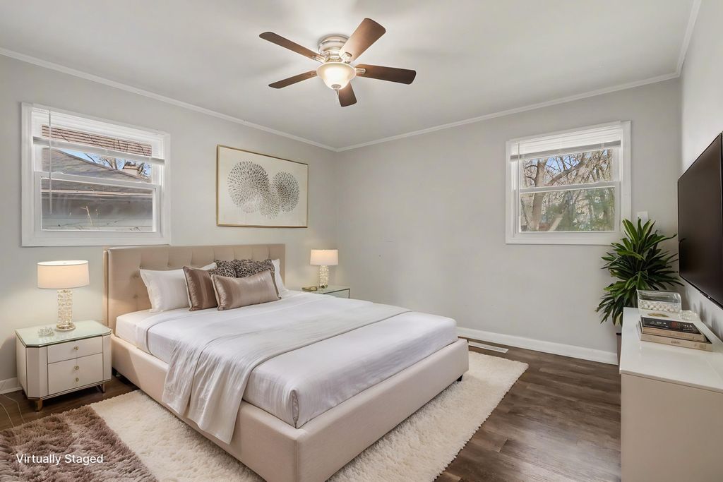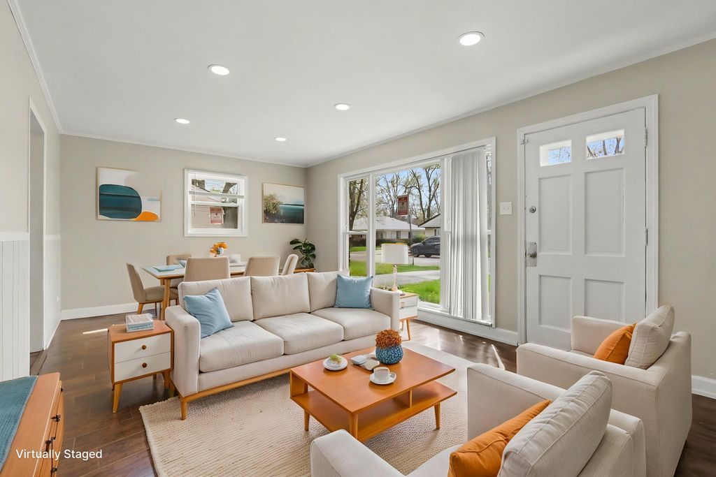 THIS IS IT! You will love this 3 BEDROOM / 1 BATH ranch home. White trim and doors throughout. Updated kitchen with plenty of cabinets and updated countertops, custom mosaic glass tile backsplash and stainless steel appliances. New luxury wood laminate flooring throughout including in bedrooms. Updated modern bathroom with new vanity and surround tub and shower wall. Separate laundry room with utility sink and washer and dryer included. Large living room with stunning picture window - it's the perfect place to entertain! Recessed lighting and all newer light fixtures throughout. Sewer clean-out installed! MAINTENANCE FREE - brick and vinyl home with all newer vinyl windows. Plenty of storage with a 2 CAR GARAGE. This home has a nice layout and offers exceptional value! Nothing to do here except relax and enjoy your private fully-fenced backyard with plenty of room to grill and entertain. Enjoy all the area has to offer including walking trails, parks and abundance of nature!! Commuters can easily access major highways, dining shopping and schools. Lower taxes even further with your homeowner exemption. Ask your lender about grants that may be available for this home! Don't miss this one -- book your showing today!!
