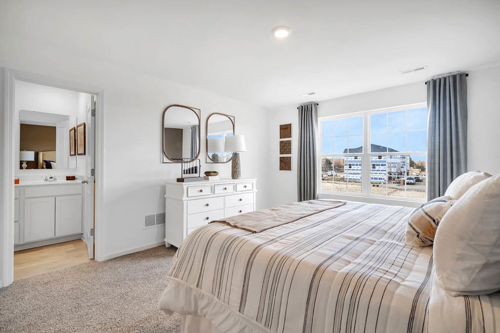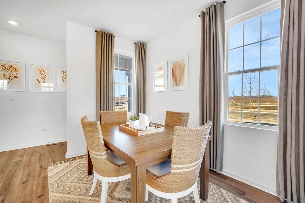 Discover yourself at 1673 Baler Ave, a beautiful new townhome in our Wheatland Crossing community in Aurora, Illinois. This home will be ready for fall move in! This home includes two cars. garage and a fully maintained home site. This Ashton plan offers 1,794 square feet of living space with 3 bedrooms, a loft, and 2.5 baths. As you enter the home, you will be greeted by the open concept design, including dining and living areas and an expansive kitchen overlooking it all. The kitchen features designer cabinetry, a spacious island with quartz countertops, a pantry, and stainless-steel appliances. Luxury vinyl floors are included in all the first level and has 9' ceilings through-out. Upstairs you will find a nicely sized loft and a large primary bedroom with 2 closets and an en suite bath. There is also a laundry room, a second full bath, and two additional bedrooms. All Chicago homes include our America's Smart Home Technology featuring a smart video doorbell, smart Honeywall thermostat, smart door lock, Deako smart light switches and more. Photos are of a similar home.