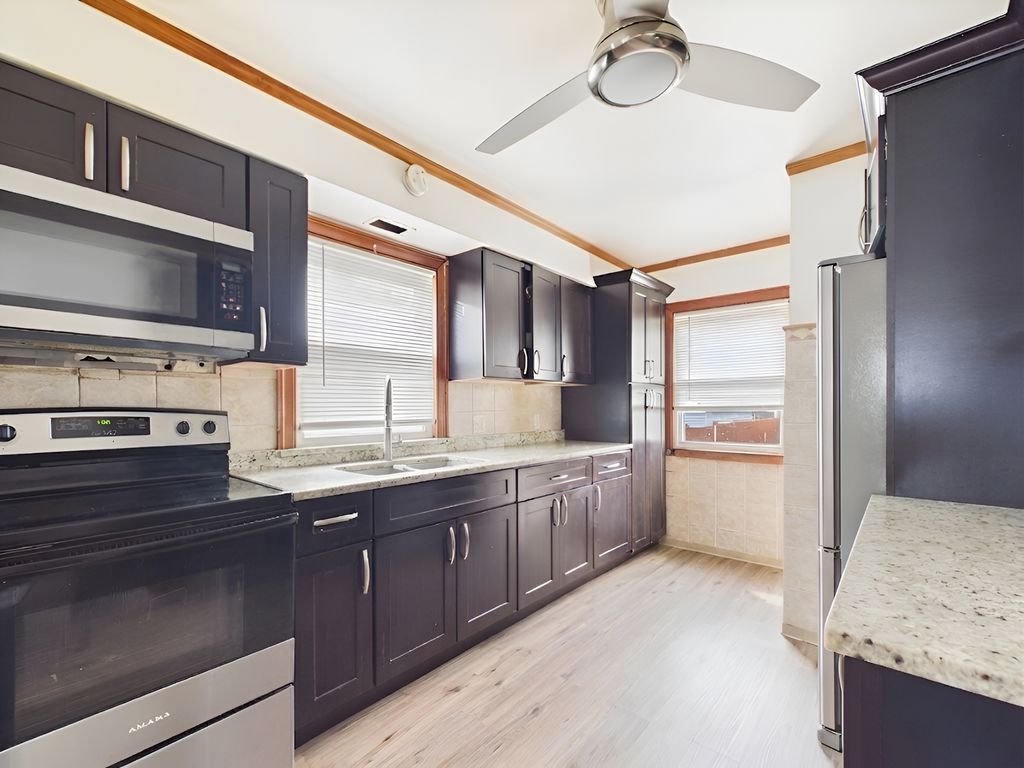 Welcome home to this charming, well-maintained property on a quiet block in a longtime homeowner neighborhood. Located directly across the street from the elementary school, this home is ideal for families seeking convenience and a peaceful setting. Inside, you'll love the updated kitchen in 2022 with modern cabinets and elegant marble countertops, plus a newly added bedroom in the basement that includes a spacious walk-in closet, perfect for guests, an in-law suite, or a home office. The home itself shows pride of ownership, highlighted by a new roof installed in 2025 on both the house and the 2-car garage. Outside, the large fenced backyard features a built-in firepit, making it perfect for entertaining or simply unwinding after a long day. This move-in ready home offers a great mix of updates, comfort, and location, minutes from schools and local amenities in the neighborhood.