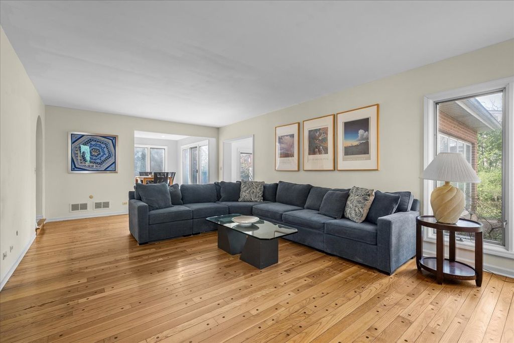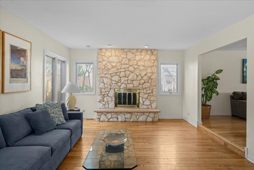 Warm, welcoming, and wonderfully laid out, this 4 bedroom, 2 and 1/2 bathroom brick Colonial sits on a large, private lot in Highland Park's sought after Braeside neighborhood. The main level flows effortlessly from room to room, anchored by two distinct living areas: a cozy family room with a dramatic floor-to-ceiling stone fireplace and a gracious formal living room filled with natural light. The formal dining room features gleaming hardwood floors and a mirrored accent wall that beautifully opens the space. The renovated eat-in kitchen impresses with crisp white shaker cabinetry, quartz countertops, gold hardware, a herringbone tile backsplash, an LG gas range, and a separate breakfast area with sliding door views of the backyard. The heated four season sunroom is a true highlight, offering panoramic views of the mature, landscaped yard and private stone patio. A tucked away first floor office and laundry room complete the main level. Upstairs, the primary suite includes 2 big walk-in closets and a large primary bath with a double vanity, extra large shower, whirlpool tub and water closet. Three additional generous bedrooms round out the upper level. The massive unfinished basement is ready for your vision. There is also an attached 2-car garage. Close to Braeside Elementary School, the Green Bay Trail, the Chicago Botanic Garden, Ravinia Festival, the Braeside Metra station, downtown Highland Park, and downtown Glencoe. Easy proximity to the Edens Expressway and 294.