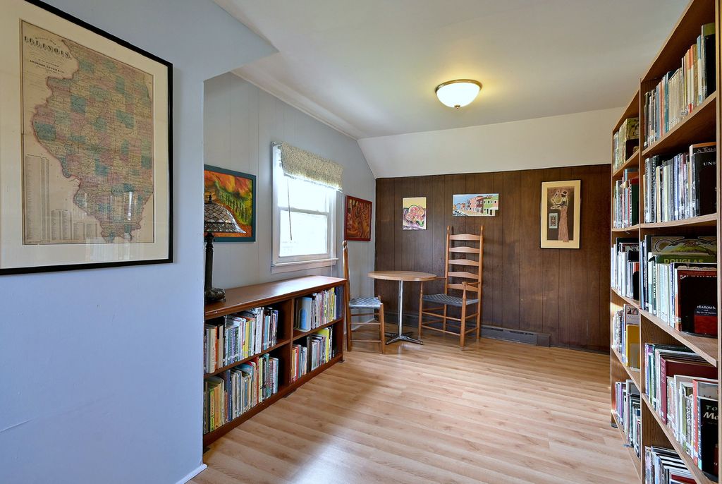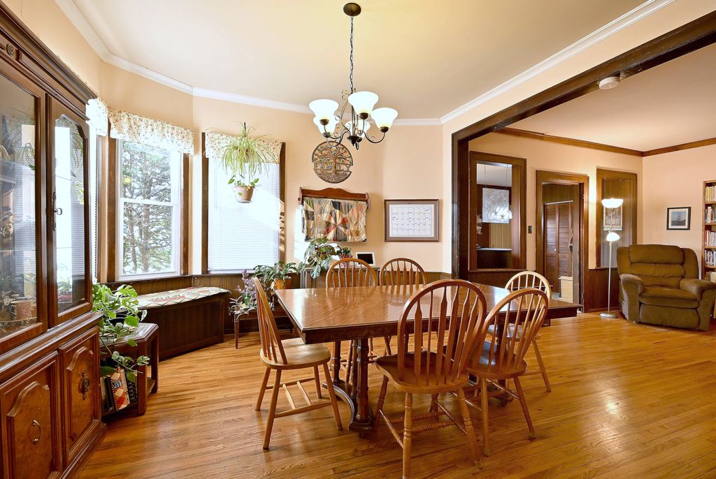 Welcome to this lovely home that flows with charm and ease. It has 4 bedrooms, 2 bathrooms, mudroom, and spacious rec room. .The enclosed porch welcomes you and is currently being used as a sunny music room. The spacious / living room dining room area can be spatially adapted for your entertainment needs. Thin planked oak floors and cove moulding provide a beautiful historic feel. The kitchen was recently remodeled with new maple cabinets (2026), built in dishwasher, and gas oven/range. The mudroom is right off the kitchen providing a very convenient and useful space. The comfy and spacious second floor features a family room as well as an office, and a full bath and bedroom. The basement has a large rec room, laundry, and plentiful storage. This home has a detached 2 car garage with a large concrete parking apron. Both bathrooms were remodeled in 2024 and the roof was torn off and replaced in 2022.