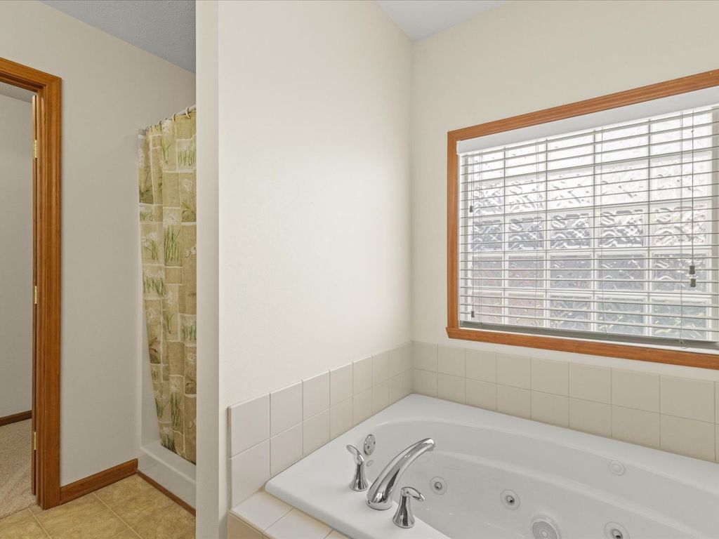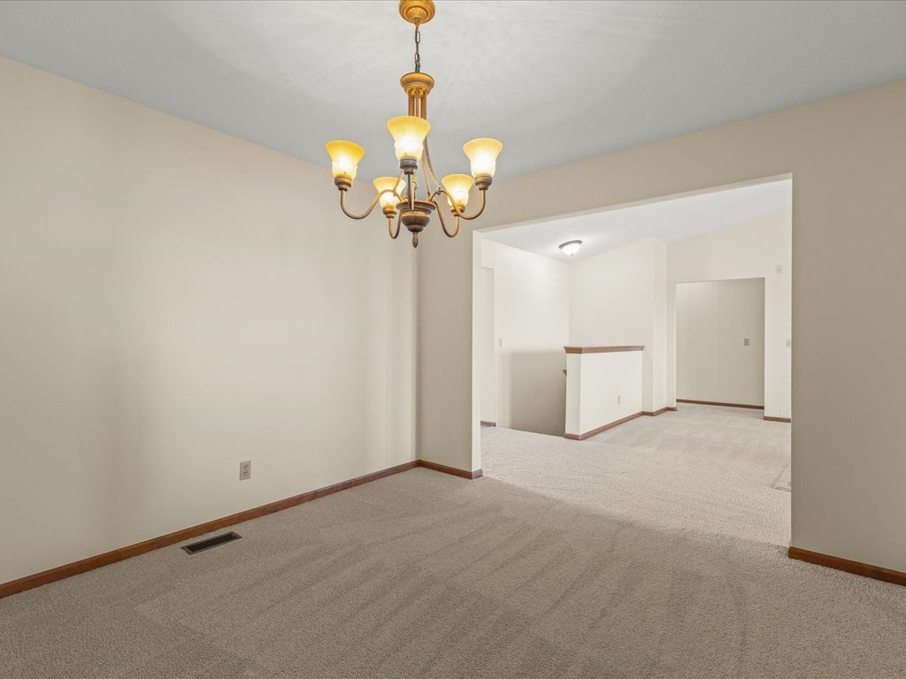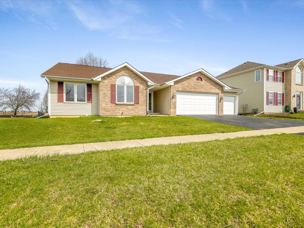 Welcome to this open and spacious 3-bedroom ranch nestled at the end of Burnett Drive in a cul-de-sac. Inside, the entry flows into a bright living room with vaulted ceilings, fireplace, and new carpeted flooring throughout. The open concept kitchen looks out into the living room area and features a tile backsplash, large eat-in kitchen space, built in office nook, and sliding doors that open to a large patio - perfect to catch a gorgeous sunset. The dining area provides room for a full size table and plenty of space to entertain. The primary suite includes a private bath with double vanity, soaking tub, walk-in shower, and walk-in closet. A 1st floor laundry adds convenience while two additional bedrooms and another full bath complete the main level. A huge unfinished basement provides endless possibilities for the next homeowner. Along with a short walk to schools, this move-in ready home combines style, comfort, and function in one inviting package.