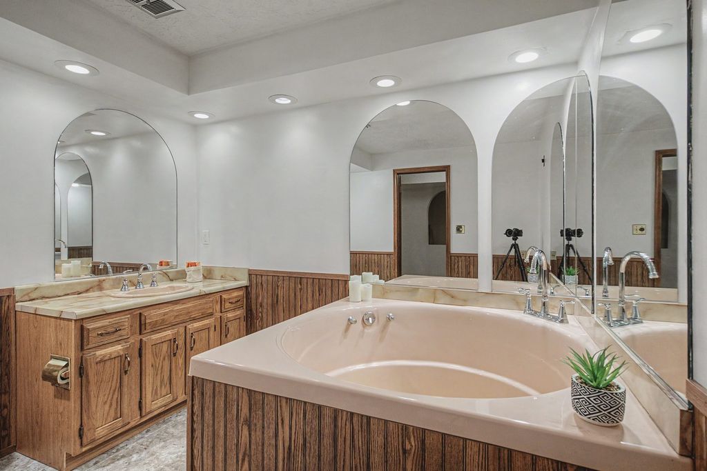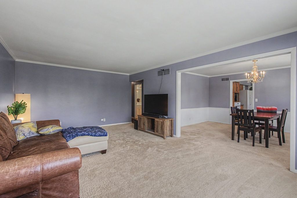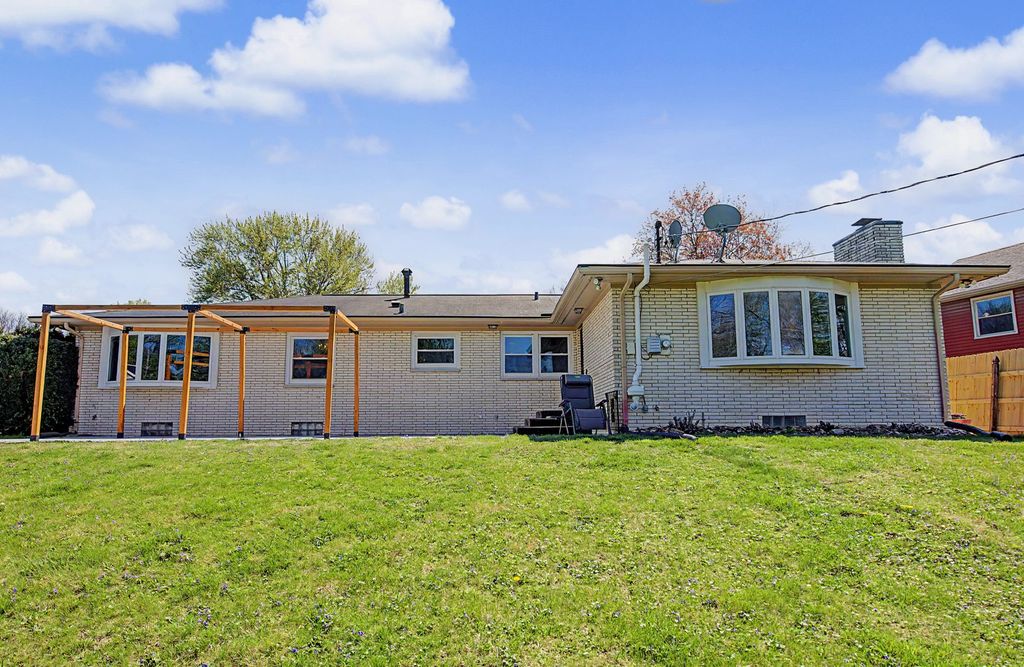 Once you step into this large, brick ranch, you will feel right at home! The interior of the home has been recently painted and there is so much room for everyone and everything. Beautiful, eat in kitchen, with all appliances, there is a family room at the back of the home with a fireplace overlooking the large, fenced yard and patio area. The formal dining room offers additional space for dinners and gatherings and there is another large, main floor living room. The three bedrooms all are nice sized, and the primary bedroom has a 3/4 bath. Enjoy your evenings in the partially finished basement that offers a fireplace, built-in wet bar, a pool table and shuffleboard table and a full bathroom as well. The laundry room offers built in cabinets, a freezer and an additional stove and sink and at the back of the house there is a large room that would be great for a workout area, craft room or whatever you are needing. Oversized, 2 car attached garage. This home is so much larger than it looks like from the front, and you won't be disappointed! Seller is offering an AHS Home Warranty with an acceptable offer. All appliances stay and are as-is unless covered by the home warranty.