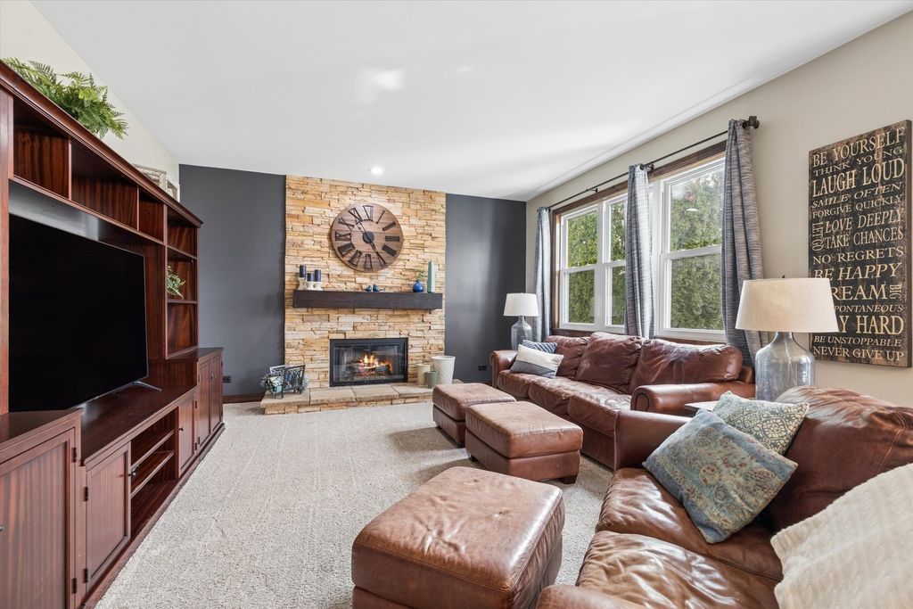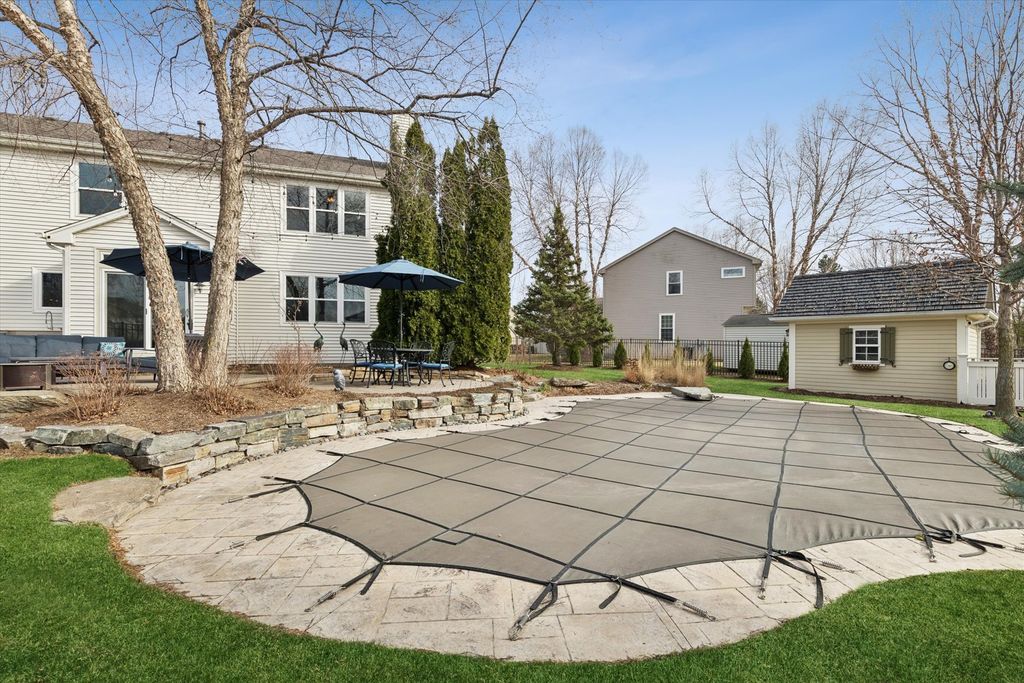 Your Private Oasis Awaits!!! Step into luxury with this stunning 4-bedroom, 2.5-bath home designed for both everyday comfort and unforgettable entertaining. The backyard is truly a showstopper-featuring a resort-style in-ground Pebbletec pool complete with a jump rock with stamped concrete surround as well as a breathtaking multi-level paver patio. This amazing backyard has professionally designed landscaping with custom retaining walls and elegant hardscapes. A custom outdoor kitchen takes entertaining to the next level, complete with a wet bar, integrated high-end grill, and built-in refrigerator for ultimate convenience. An outdoor pool house/shed provides additional storage, while the spacious 3-car garage offers ample room for vehicles and more. Inside, you'll find thoughtful updates throughout, including a beautifully updated kitchen with solid walnut hardwood flooring, cherry wood cabinets and quartz countertops. The modernized bathrooms and the exquisite custom woodwork, trim, and doors throughout the home add warmth and character to every room. The elegant dining and living rooms are enhanced with custom design details and striking stone pillars, creating a sophisticated yet inviting atmosphere. The open-concept layout seamlessly connects the kitchen to the spacious family room, where a cozy fireplace creates the perfect focal point for relaxing evenings and gatherings. A convenient first-floor office or den provides the ideal space for working from home or a quiet retreat. The fully finished basement adds even more versatile living space, perfect for entertaining, a home gym, or recreation area. This home perfectly blends style, function, and resort-style outdoor living-making it a rare find you won't want to miss!