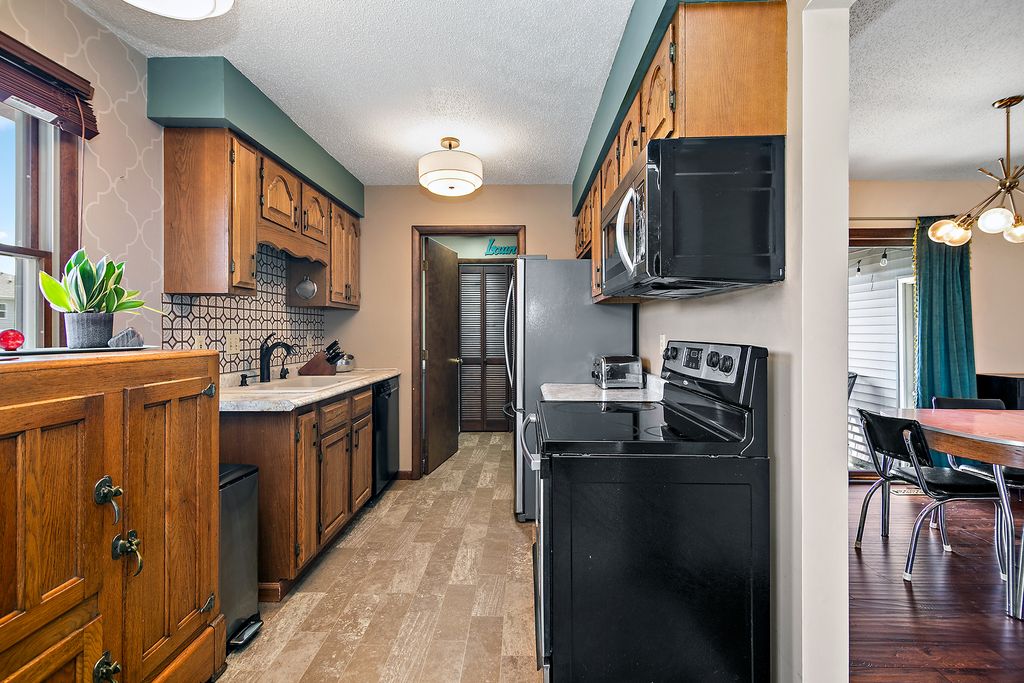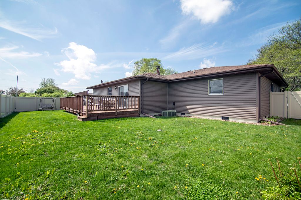 Beautifully maintained 1,679 SF mid-century modern ranch in Bourbonnais offering 3 bedrooms, 2 full baths with a private primary en suite and an ideal layout with multiple living spaces. You'll love the flexibility of both a spacious living room and separate family room, featuring new carpet and a cozy gas fireplace-perfect for everyday living or entertaining. The galley kitchen is both functional and stylish with stainless steel appliances and flows seamlessly into the dining area with sliding doors leading to a concrete patio-an ideal setup for indoor/outdoor living. A separate laundry room adds convenience, with washer and dryer included. Step outside to a fully fenced yard with a new PVC privacy fence, large deck, and additional patio space, offering multiple areas to relax or entertain. The 2.5-car garage provides plenty of storage and functionality. Key updates include water heater (2020), siding (2017), and roof (2014). A great combination of space, style, and updates in a desirable Bourbonnais location-this one checks all the boxes.