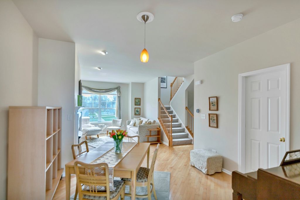 This single owner beautifully maintained four-story luxury townhome offers over 2,100 square feet of thoughtfully designed living space in one of Palatine's most desirable locations. From the moment you step inside, you'll notice the elevated finishes-premium hardwood flooring throughout, custom millwork, and a striking fireplace-blending warmth and sophistication with a modern, open layout that's perfect for both everyday living and entertaining.The heart of the home is a light-filled kitchen that opens to a private balcony, perfect for morning coffee or evening unwinding, complemented by a suite of smart home upgrades including a Ecobee thermostat, Smart Samsung Refrigerator, and Moen smart water shut off. Every detail, from the oversized island to the sleek cabinetry and stainless steel appliances, enhances both functionality and aesthetic appeal.This home is as practical as it is beautiful, with a newer Trane HVAC system, brand-new hot water heater (2025), backup sump pump, and an oversized basement with bathroom rough-in-offering endless potential for a finished recreation room, home gym, or additional living space. Solid core interior doors, upgraded lighting, and a spacious two-car garage and additional storage further elevate the home's comfort and convenience. Located just a 5-minute walk to downtown Palatine and the Metra, this home offers a seamless connection to both suburban charm and city access. Enjoy the vibrant local scene with an array of restaurants, nightlife, and boutique shopping, all just steps from your doorstep. Nearby parks, walking trails, and major destinations like Woodfield Mall, Deer Park, and the Chicago Botanic Garden provide endless opportunities for recreation and leisure. With its blend of modern upgrades, unbeatable walkability, and long-term value, this townhome offers a rare opportunity to own a Chicago area suburban lifestyle that truly has it all-space, comfort, and convenience in one of the most desirable communities.