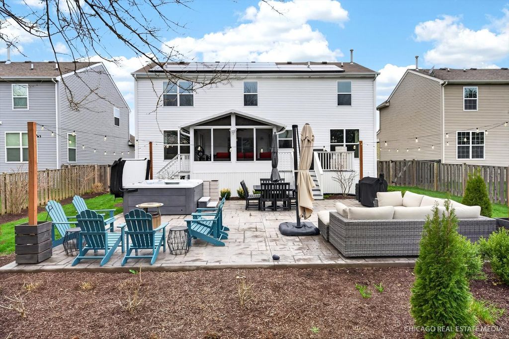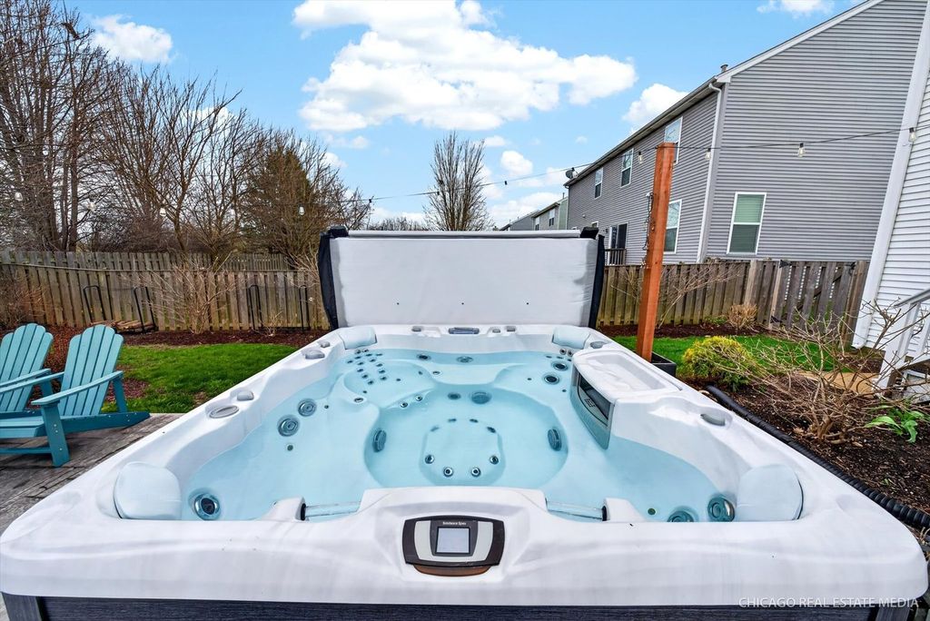 Come see this stunning 4-bedroom home with a dedicated office, beautifully updated in today's sought-after modern farmhouse style. From the moment you walk in, you'll love the new luxury vinyl flooring throughout, updated staircase treads, stylish backsplash, and newer stainless steel kitchen appliances-making this home truly move-in ready. The space just keeps going! Enjoy a full basement with a rough-in for a future bath-perfect for expanding your living space exactly how you want it. Step outside and fall in love with the backyard oasis. A fully fenced yard features a screened-in porch plus a deck-ideal for relaxing or entertaining. The stamped concrete patio and hot tub create the ultimate outdoor retreat. Additional upgrades include an EV charger and tons of closet space and storage throughout. This home blends style, function, and comfort in all the right ways-a true must-see!