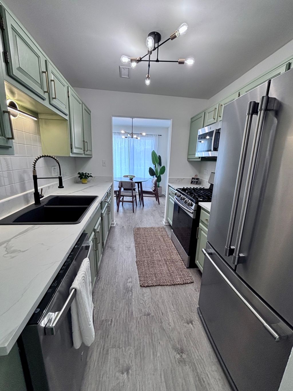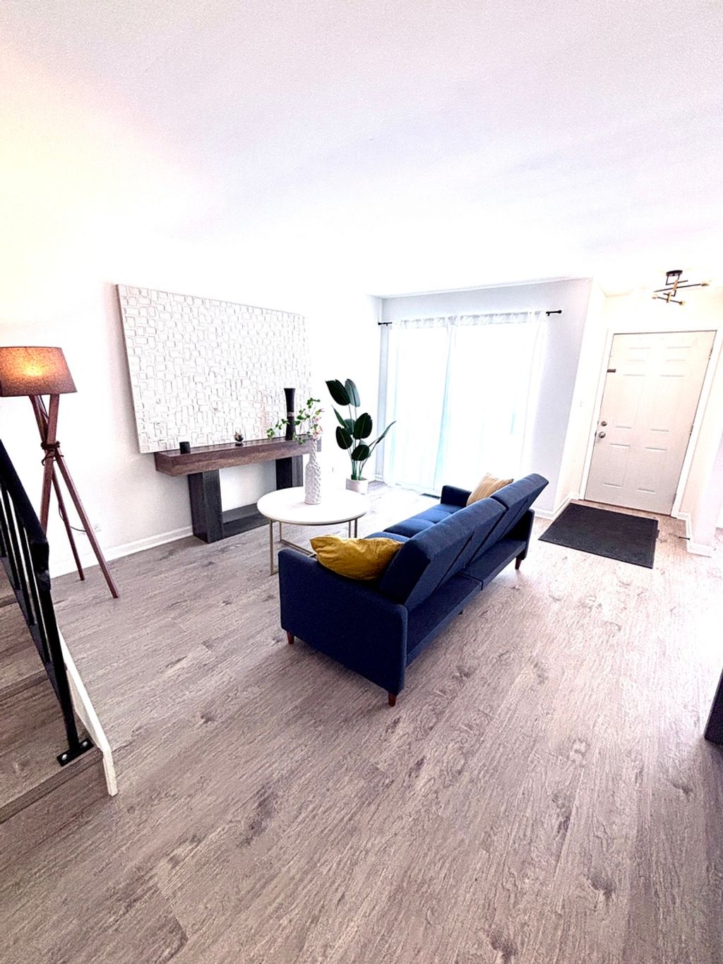 Beautifully updated two story townhome with the comfort and privacy of a single-family home! This bright and spacious 3-bedroom, 1.5 bath gem features large windows that fill the space with natural light, and a generous fenced-in patio. Inside, enjoy modern upgrades throughout: newer stainless steel appliances, newer in-unit washer and dryer, luxury vinyl plank flooring, fresh paint, stylish light fixtures, and new window treatments. The bathrooms have been refreshed with two new vanities and light fixtures, while the updated kitchen boasts a sleek, modern design. Newer roof & siding. Located in a well-maintained subdivision with great amenities including a pool and party room, this home offers comfort, convenience, and community. Nothing to do but move in and enjoy!