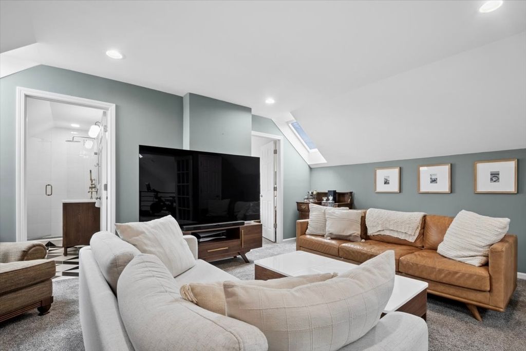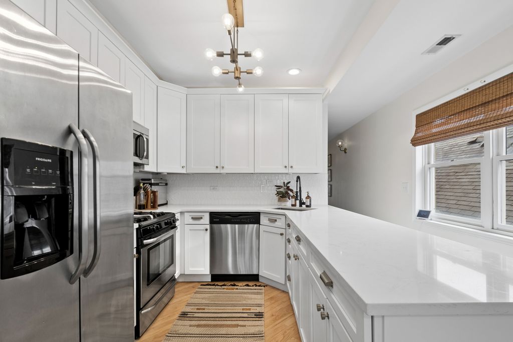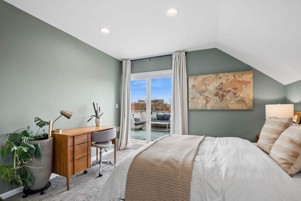 Location, location, location! This spacious, sun-drenched penthouse is perfectly situated in the heart of Lakeview. Offering 3 bedrooms and 3 bathrooms, this duplex-up features a flexible, functional layout ideal for both entertaining and working from home. The kitchen showcases updated cabinetry and quartz countertops, flowing seamlessly into the expansive living and dining areas highlighted by soaring cathedral ceilings and skylights that flood the space with natural light. Thoughtfully updated bathrooms with heated floors, newer HVAC (2023), and a new in-unit washer and dryer (2025) make this home truly move-in ready. Step outside and enjoy everything Lakeview has to offer-just moments from Southport Corridor, Wrigley Field, Lake Michigan, and the CTA. Topping it all off is a private rooftop deck, perfect for relaxing or entertaining all summer long. This is city living at its best.