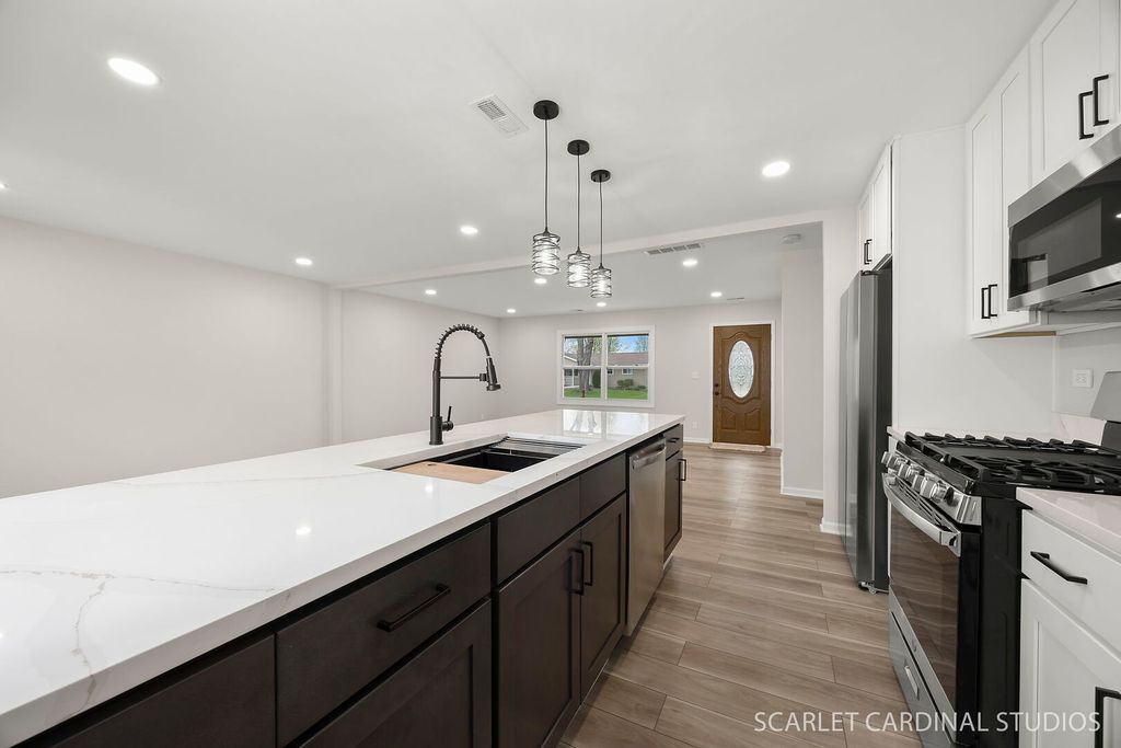 Welcome home to this beautifully renovated (2026) ranch, where modern design meets effortless comfort. Featuring 4 spacious bedrooms, 2 elegant baths, and a versatile office/den, this home offers both functionality and style on an expansive lot. Exterior upgrades include a newer roof, siding, gutters with leaf guards, and downspouts (approx. 2024), along with brand-new windows (2026), ensuring peace of mind for years to come. Step inside to discover stunning luxury vinyl plank flooring flowing seamlessly throughout the home. The thoughtfully designed kitchen showcases sleek modern cabinetry with soft-close features, complemented by a striking quartz island and matching quartz surfaces in the bathrooms. Both bathrooms have been beautifully updated with spa-inspired rain showers, creating a serene, elevated experience. The entire home has been tastefully curated with a contemporary aesthetic that feels both fresh and inviting. Additional value comes from newly installed mechanicals, including the recent introduction of gas service to the home-an important upgrade for efficiency and future flexibility. Ideally located near hospitals, shopping, dining, and everyday conveniences, this home offers the perfect blend of style, substance, and location. Quick close possible.The Listing Broker has a part interest in the entity which owns this property.