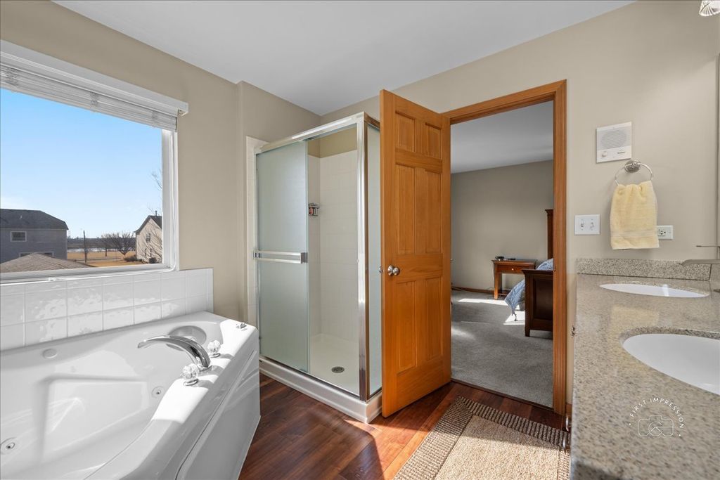 Your opportunity to own a dream home in the highly sought-after Tanner Trails neighborhood is here! Easily the most value for your money! This beautifully maintained home offers the perfect blend of space, flow, and function-and is truly an entertainer's dream-all in one of the area's most desirable communities. This exceptionally clean 4-bedroom home features a layout designed for both everyday living and entertaining. The spacious living and dining rooms flow seamlessly together, creating an inviting space for gatherings. The kitchen offers abundant cabinet and counter space, stainless steel appliances (all included), a large pantry, and opens directly to the family room with volume ceilings and oversized windows that fill the space with natural light. A heated sunroom provides the perfect spot for morning coffee or relaxing at the end of the day. Upstairs, you'll find four generously sized bedrooms, including a primary suite with a private en suite bath featuring a soaking tub, separate shower, and dual sinks. A versatile bonus room adjacent to the fourth bedroom offers endless possibilities for a home office, craft room, reading nook, or play area. The finished basement with a half bathroom adds even more flexible living space-ideal for a recreation room, exercise area, or additional family room. Step outside to a backyard designed for summer entertaining, complete with a covered patio and built-in grills. Additional highlights include a three-car heated garage, irrigation system, and alarm system, along with a backyard shed for extra storage. Tanner Trails is known for its miles of walking trails, parks, playgrounds, and convenient access to I-88, shopping, and dining. Major updates include a new garage heater (2026), AC (approximately 3 years old), and a 9-year-old roof.