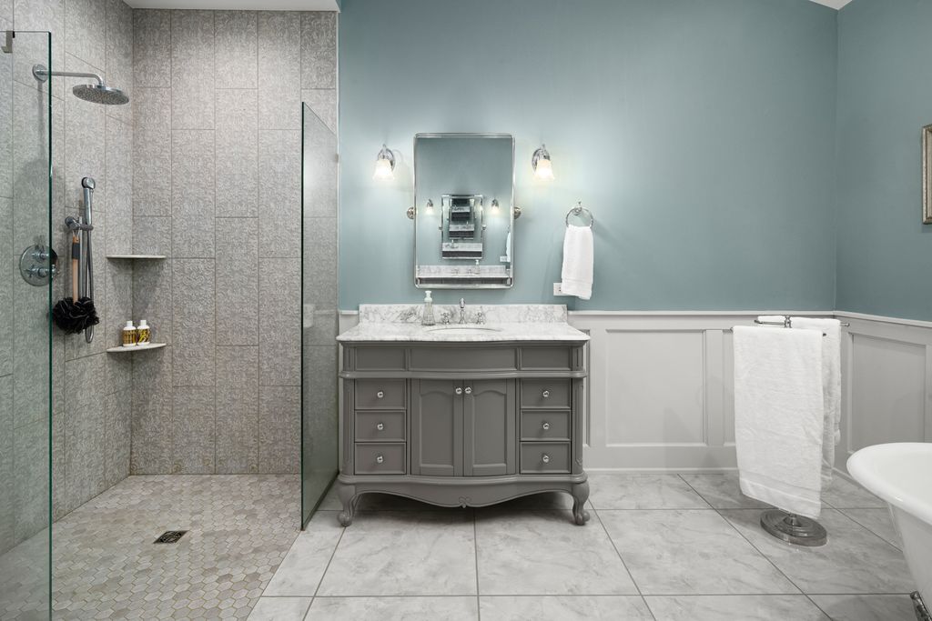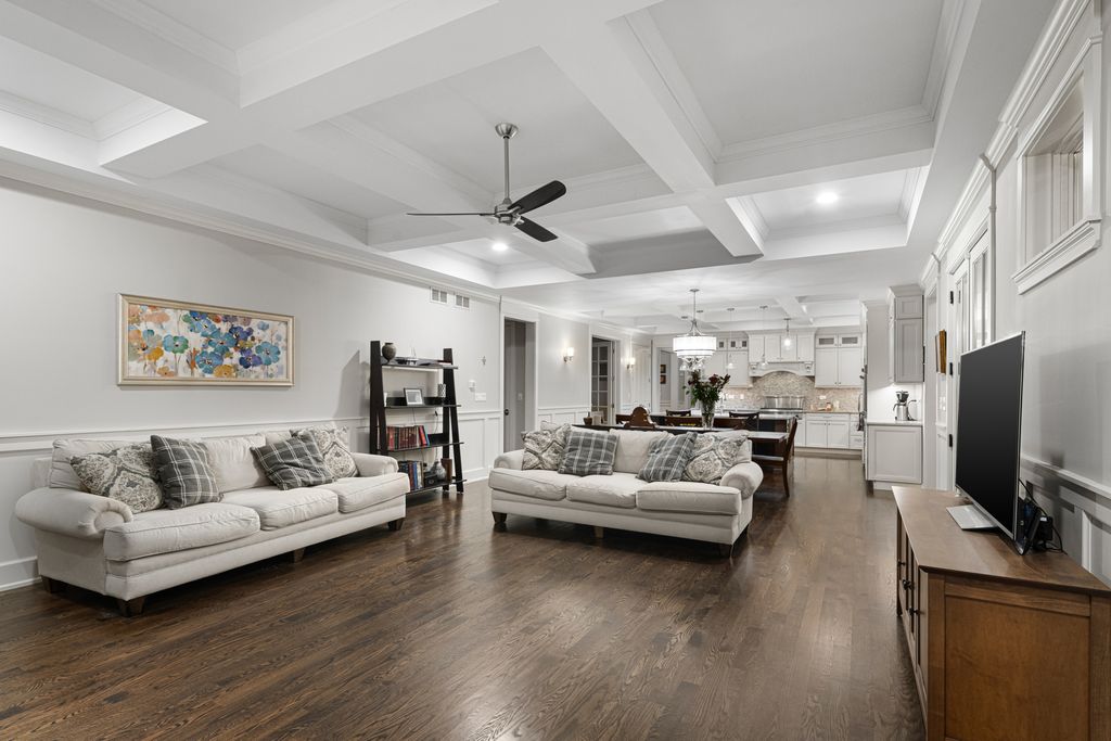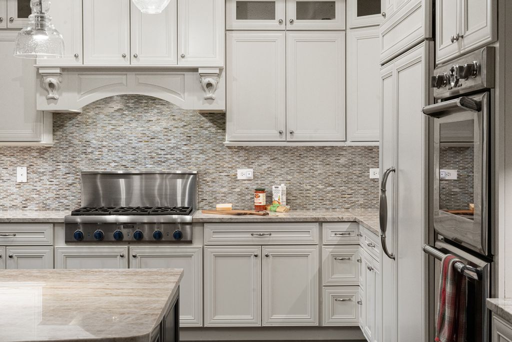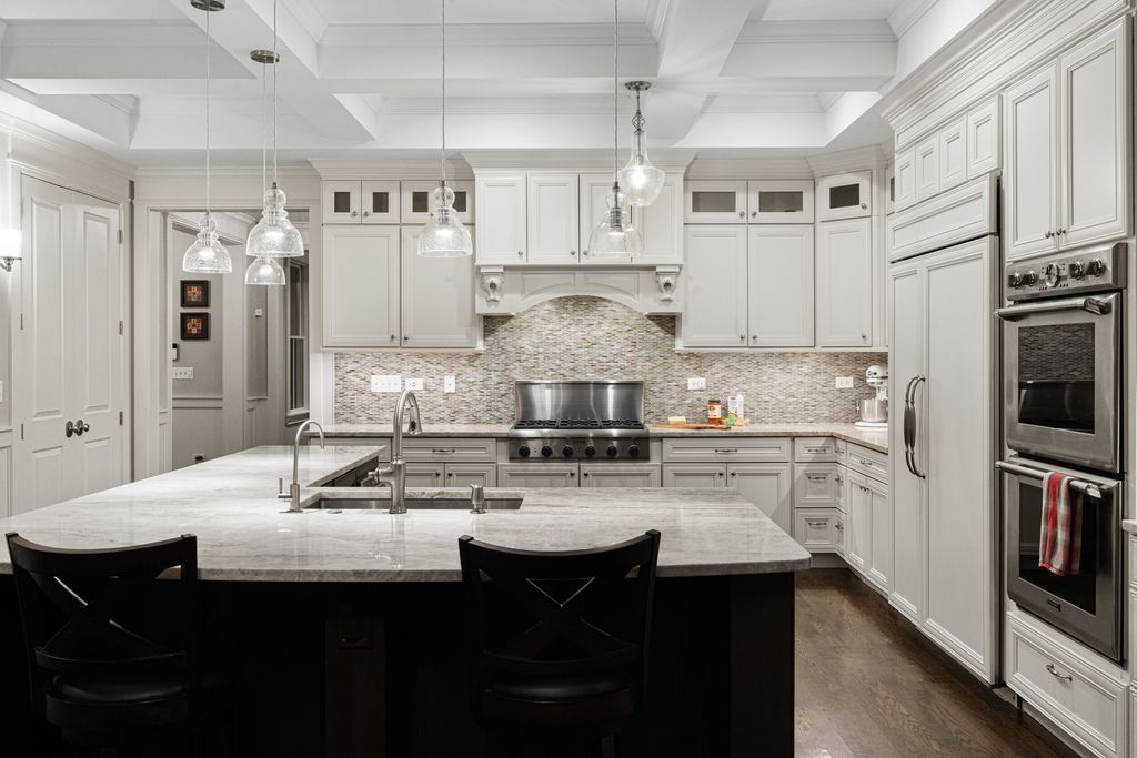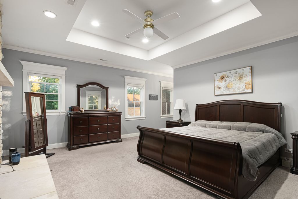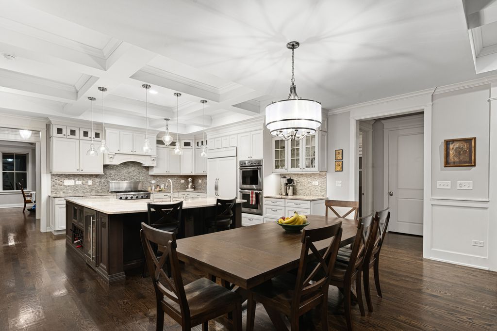 Nestled in the prestigious Scarsdale Estates Subdivision of Arlington Heights, this stunning 5-bedroom, 4.5-bathroom Colonial home, custom design/build in 2019, offers 4,500 square feet of luxury living above ground and another 2000+ square feet in the lower-level. The open floor plan showcases beautiful Oak hardwood floors, recessed ceilings ranging from 9 to 10 feet, an inviting family room with a limestone fireplace and coffered ceilings. The chef's kitchen features solid wood custom cabinetry, rare stone countertops, high-end Sub-Zero and Thermador appliances, double ovens, and flows seamlessly into the formal dining room, which provides access to the front porch. Perfectly positioned dining room surrounded by windows and coffered ceilings. The first floor includes a main floor suite with ensuite private bath, office, and large laundry room with a laundry chute connecting to the second floor. The spacious mudroom leads to an oversized 3.5-car garage with 8 foot doors and heated. The primary suite boasts limestone fireplace, spa-like master bath with large soaking tub and large walk-in closet. Also on the second floor you have three more guest bedrooms and two more guest bathrooms. Additional highlights include a whole-home backup generator, 400-amp electric service, an easy-access stairway from the garage to the partially finished basement, large driveway for multiple cars with multiple parking spaces fitting over 10 cars with ease, and room to maneuver/turn around. Located within the highly-rated Prospect High School district, this home combines modern elegance with functional amenities, including a drainage system around the perimeter, Ethernet CAT 6 throughout, and an oversized garage ideal for larger vehicles or trailers. Steps from shopping & restaurants! Home sits on 1/2 acre of land.