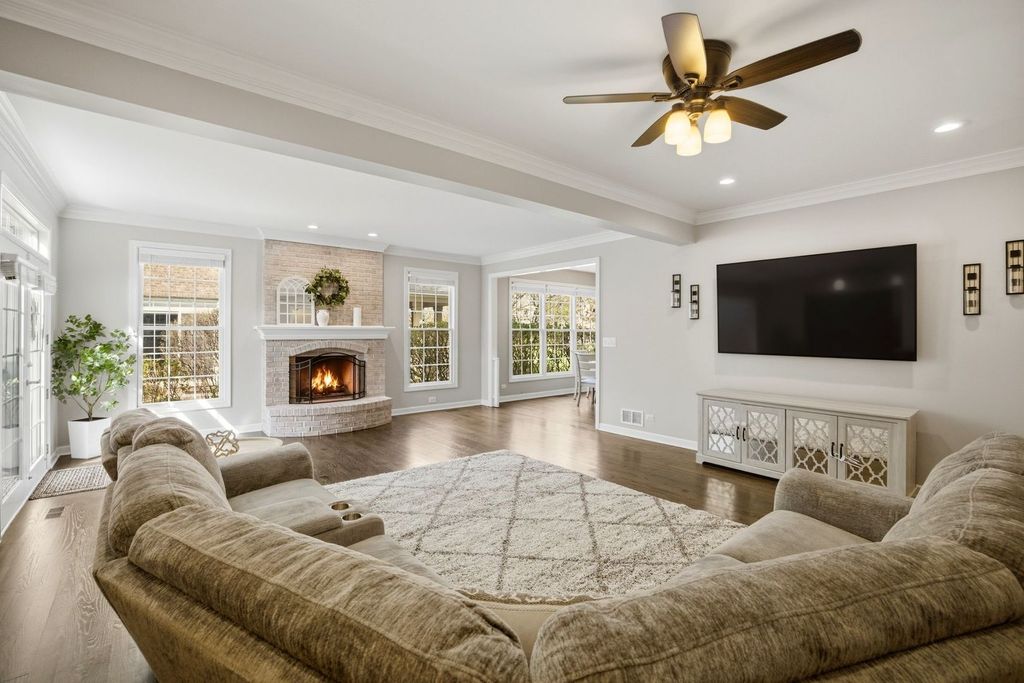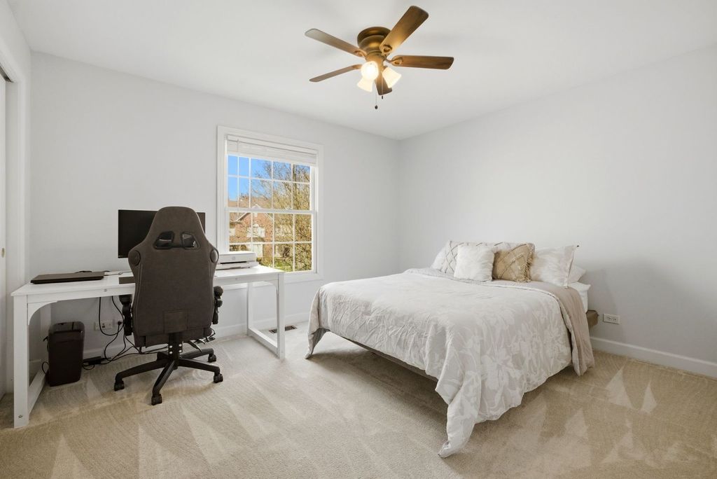 Rare end-unit townhome in the highly sought-after Royal Fox development, steps from the prestigious Royal Fox Country Club. With its private setting and larger footprint, this 3 bed, 2.5 bath home lives more like a single-family residence than a typical townhouse. A two-story entry and vaulted living room create an open, airy feel right from the start, with strong natural light throughout the main level. The family room offers a comfortable gathering space centered around a gas fireplace and access to a private deck. while the kitchen is well laid out for both daily living and entertaining, featuring a dining area, breakfast bar, and newer stainless steel appliances (2021). 9 ft ceilings, first-floor laundry, refinished hardwood floors and upstairs carpet paired with updated paint (2021) give the home a clean, move-in-ready feel. Upstairs, all three bedrooms are generously sized, including a primary suite with a fully remodeled bathroom finished with a more modern, updated design. The exterior features a beautiful wraparound front porch that adds character that provides a more secluded outdoor space. Major improvements have already been completed, including roof (2019), furnace and A/C (2024), siding (2024), and water heater (2025).