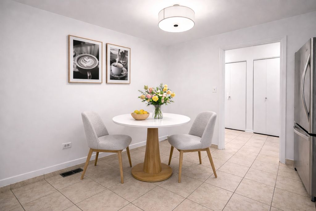 Enjoy this bright, welcoming home featuring an eat-in kitchen with white cabinetry and stainless steel appliances. The dining area flows effortlessly into the expansive living room with large bay windows, highlighted by charming window seats and abundant natural light. The spacious living room offers many possibilities, including an option to convert a portion to an office/den. The generously sized bedroom provides excellent closet space, with additional storage throughout the unit. An updated bathroom offers a walk-in shower and ample cabinet storage. Extra storage closet and laundry are conveniently located in the building just across the hall. One parking space is included. Ideally situated within walking distance to local shops and just minutes from downtown Wilmette and Evanston's Central Street shopping and dining. Pets welcome!