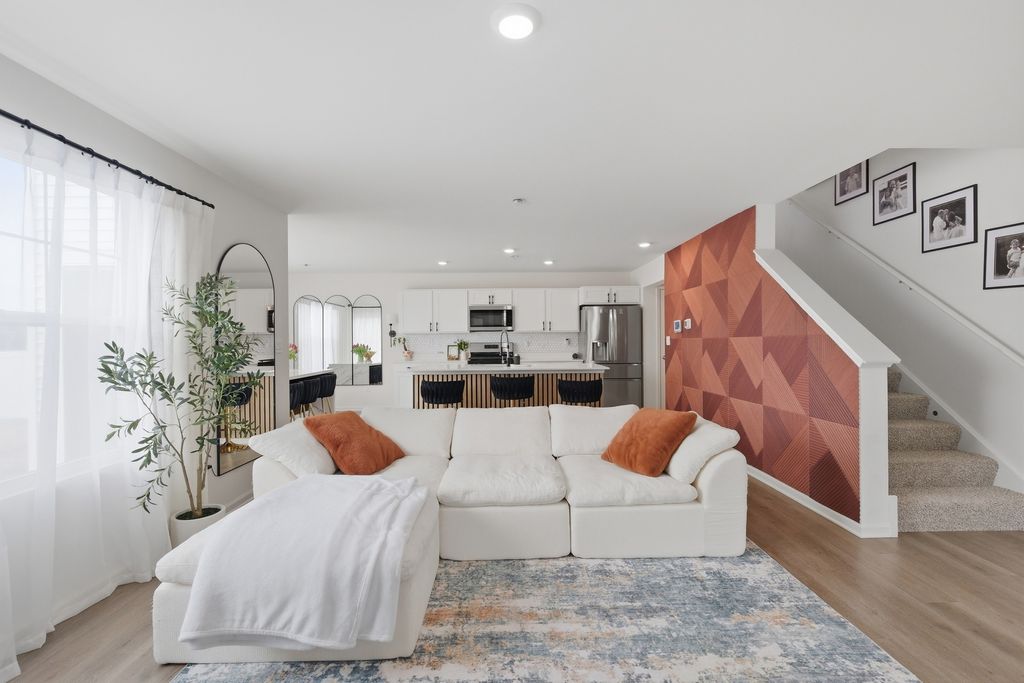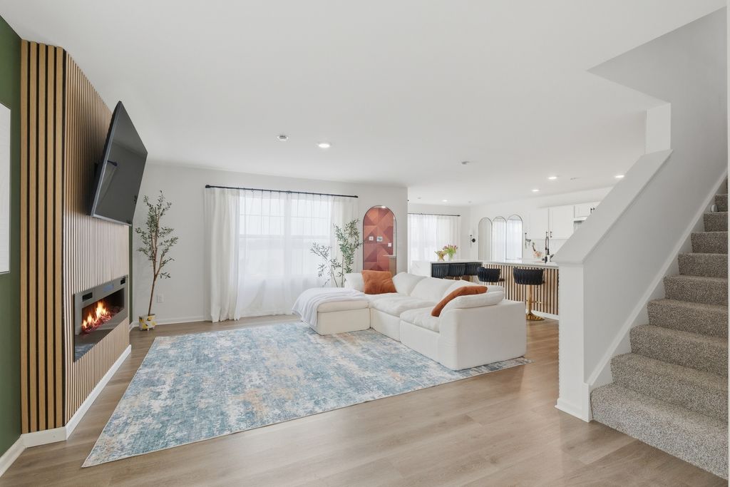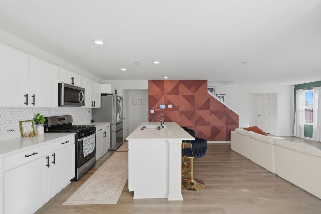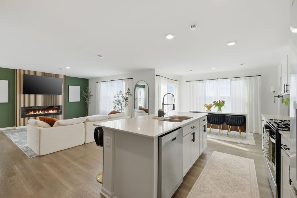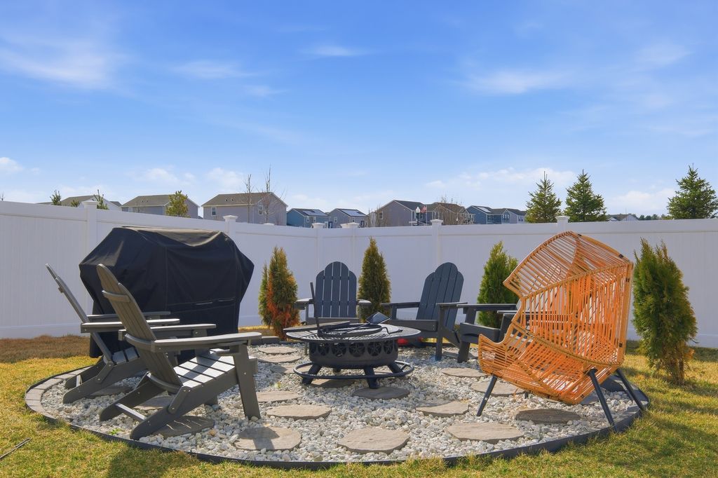 Better than new and extensively upgraded, this stunning Prairie Ridge home offers modern design, comfort, and high-end finishes already completed for the next owner. Built just one year ago, this 4-bedroom, 2.5-bath home features a bright open-concept layout ideal for both everyday living and entertaining. The kitchen is the centerpiece, showcasing quartz countertops, a large island with seating, stainless steel appliances, walk-in pantry, and upgraded details including a designer backsplash, enhanced cabinetry hardware, and upgraded faucet. Custom panel accents continue under the island, adding a refined touch. The space flows seamlessly into the dining and living areas, highlighted by a custom paneled feature wall with fireplace and additional designer wall detailing. Throughout the home, you'll find thoughtful upgrades including custom mirrors in the living and dining rooms, stylish light sconces, upgraded mirrors and cabinet hardware in all bathrooms, kids' room wallpaper, full window treatments with rods, and ceiling-height blackout curtains. A custom wine storage railing adds a unique design element. Upstairs features a spacious primary suite with dual vanity, walk-in shower, and upgraded finishes, along with three additional bedrooms and convenient second-floor laundry with washer and dryer included. The exterior is fully enhanced with a fenced yard, professional landscaping, newly planted trees, updated plantings, outdoor garden lighting, and a beautifully designed stone fire pit patio. The garage is equipped with a high-voltage electric vehicle charger. Located in a peaceful community with easy access to I-90, Route 20, and Route 47, this home offers the perfect combination of convenience and tranquility-truly move-in ready with upgrades you won't find in standard new construction.