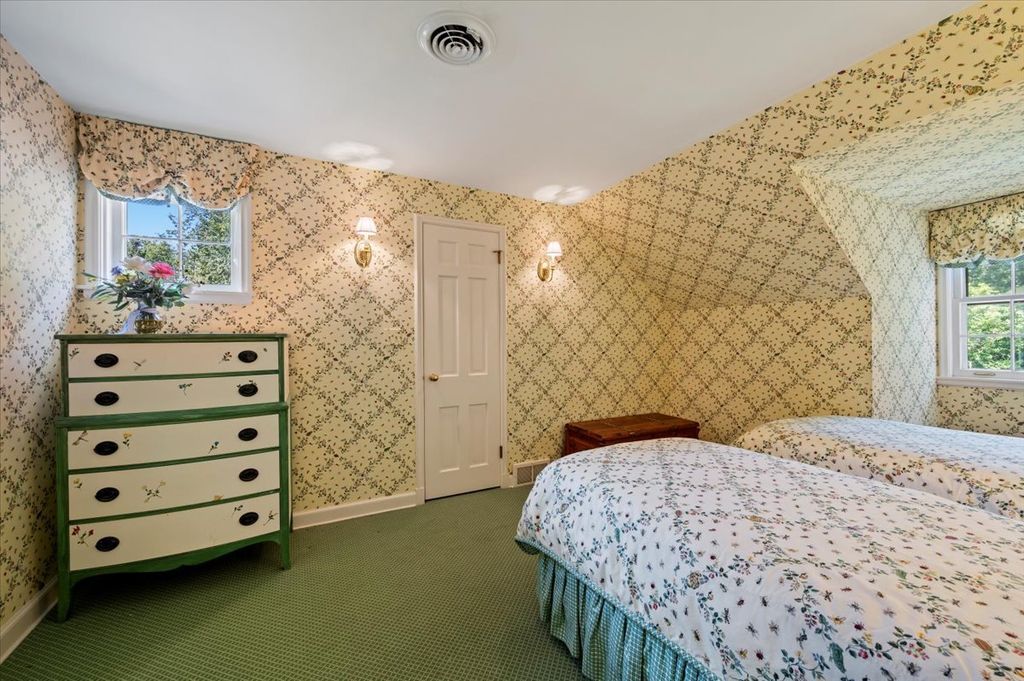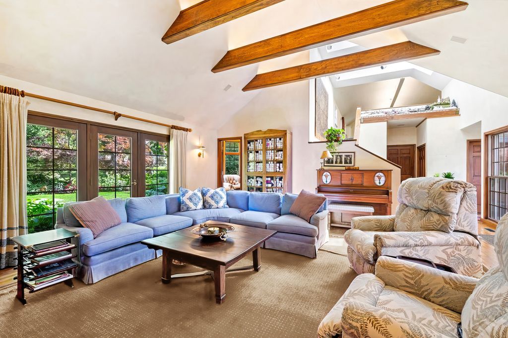 This incredible & expansive 4 bedroom, 3.2 bathroom home is situated on a spectacular property in an idyllic & private location. Surrounded by mature trees and beautiful foliage, the fantastic gardens & outdoor area boast three bluestone patios. The home brings the outdoors inside with oversized windows throughout the home. When you walk into the home, you are welcomed in the large foyer and move into the living room with marble surround fireplace that is sun-filled and bright. This leads you to the enclosed porch area where you can bask in the sun with walls of windows & surrounded by private, beautiful and mature landscaping. This home truly brings the outdoors inside to you! The dining room is perfect for hosting events and leads to the white eat-in kitchen with an island and double ovens that is very spacious for cooking and entertaining. The kitchen is conveniently located next to the first-floor laundry room. Down the hall from the kitchen is a huge wood beamed ceiling family room with patio doors that open to the outside, a fireplace with granite surround and built-in bookshelves where the media resides. The octagonal office with an oversized vaulted ceiling and is flanked with floor to ceiling windows and beautiful built-in bookshelves. Working from home has never been more relaxing in this serene setting. Take the steps off the family room up to the recreation room where you can play pool, games or watch tv in this amazing playroom area. The functionality of having a large first floor primary suite, with attached bathroom, closets galore, near your own outdoor oasis is spectacular. You are in your own bed and breakfast when sleeping in the first-floor primary suite retreat surrounded by gardens and a bluestone walkway. The second floor has three additional bedrooms and two full bathrooms. With an attached 3 car garage, circular driveway on the property and parking for guests in front of the home, you are ready to host any event at this incredible home. The lower level has storage galore and a wine cellar. This is a very special home that has been well loved for many years on the most incredible and expansive property.