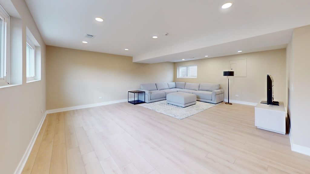 Welcome to this beautifully remodeled home in Lake Bluff offering modern design, space, and functionality. Fully renovated in 2026 with a stunning primary suite and open concept layout, this 5 bedroom, 3 full bath home features a open concept kitchen, living room, and dining room area, a huge family room, attached 2-car garage, and a detached 6-car garage that's ideal for car enthusiasts, a workshop, hobbyists or just extra storage. Step inside to a bright and airy living room featuring vaulted ceilings, large windows and recessed lighting. The dining room flows seamlessly with the kitchen and living room, creating an ideal setup for everyday living and entertaining. The beautifully updated kitchen showcases modern cabinetry, quartz countertops, stainless steel appliances, and a large island with a waterfall feature and seating. The spacious primary suite offers a large walk-in closet and a luxurious en-suite bathroom with dual sinks and a stunning shower featuring beautiful tile work and an accent wall. Four additional bedrooms provide flexible living space for family, guests, or for a home office. Two additional full bathrooms with modern finishes, tile surrounds, and tub/shower combos. The lower level boasts a huge family room, laundry room, with plenty of additional living space. New luxury vinyl plank flooring throughout, new windows, fixtures, and fresh paint make this home truly move-in ready. Located close to parks, schools, downtown Lake Bluff, shopping, dining, and more, this beautifully updated home has it all.