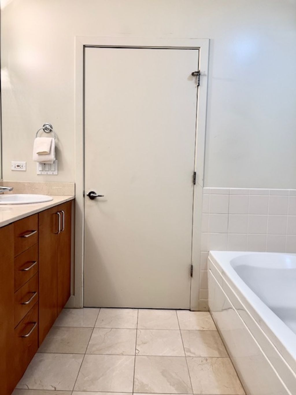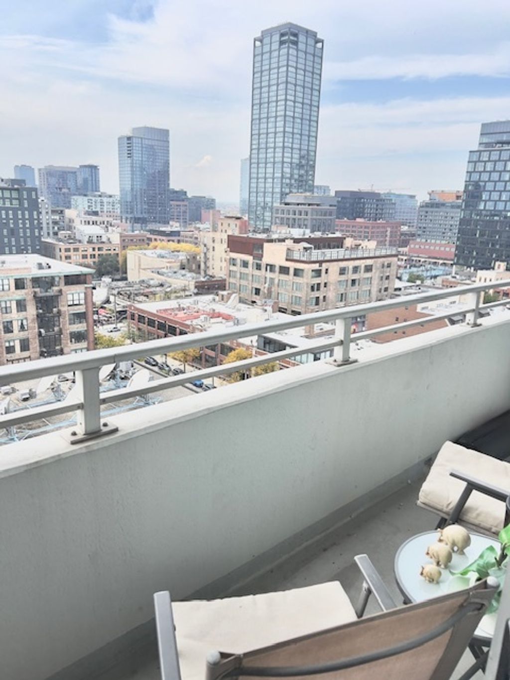 Welcome to Skybridge, where convenience, comfort, and remarkable city views meet in one of the West Loop's most desirable buildings. This exceptional and rarely available 1 bedroom, 1.5 bath residence offers a bright, open layout with floor-to-ceiling windows in living room and bedroom, an extra-long west-facing private balcony - perfect for enjoying sunset views, morning coffee, or relaxed evenings at home. One of only a select number of units in the building offering this unique blend of natural light, space, and outdoor living. The kitchen features granite countertops, stainless steel appliances, and a spacious breakfast bar that opens to the living area, creating an ideal setting for everyday living and entertaining. The primary suite comfortably fits a king-size bed and a spa-inspired bathroom with double vanity, soaking tub, and separate shower. A guest powder room, in-unit washer and dryer, and hardwood floors add both function and elegance. Skybridge is a full-amenity building offering a 24-hour doorman, fitness center, rooftop sun deck, private dog walk, bike room, and additional storage. Direct indoor access to Whole Foods provides unmatched convenience. Garage parking available for $35k. Located just steps from Randolph Street's renowned Restaurant Row, Fulton Market District, Greektown, parks, nightlife, and major transit - this is West Loop living at its finest.