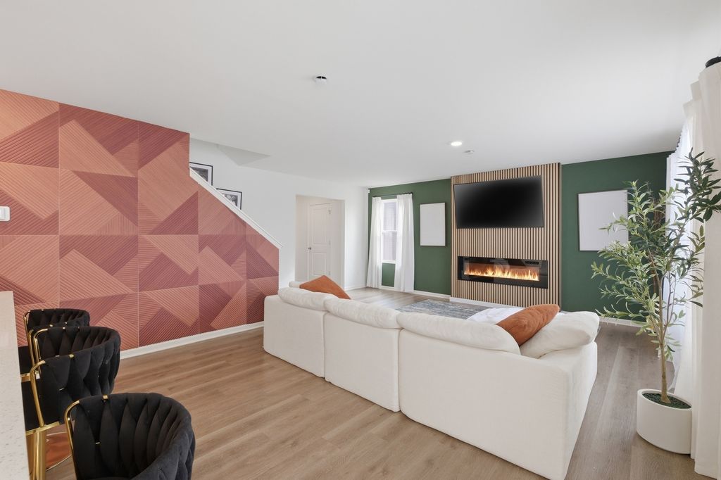 Better than new and extensively upgraded, this stunning Prairie Ridge home offers modern design, comfort, and high-end finishes already completed for the next owner. Built just one year ago, this 4-bedroom, 2.5-bath home features a bright open-concept layout ideal for both everyday living and entertaining. The kitchen is the centerpiece, showcasing quartz countertops, a large island with seating, stainless steel appliances, walk-in pantry, and upgraded details including a designer backsplash, enhanced cabinetry hardware, and upgraded faucet. Custom panel accents continue under the island, adding a refined touch. The space flows seamlessly into the dining and living areas, highlighted by a custom paneled feature wall with fireplace and additional designer wall detailing. Throughout the home, you'll find thoughtful upgrades including custom mirrors in the living and dining rooms, stylish light sconces, upgraded mirrors and cabinet hardware in all bathrooms, kids' room wallpaper, full window treatments with rods, and ceiling-height blackout curtains. A custom wine storage railing adds a unique design element. Upstairs features a spacious primary suite with dual vanity, walk-in shower, and upgraded finishes, along with three additional bedrooms and convenient second-floor laundry with washer and dryer included. The exterior is fully enhanced with a fenced yard, professional landscaping, newly planted trees, updated plantings, outdoor garden lighting, and a beautifully designed stone fire pit patio. The garage is equipped with a high-voltage electric vehicle charger. Located in a peaceful community with easy access to I-90, Route 20, and Route 47, this home offers the perfect combination of convenience and tranquility-truly move-in ready with upgrades you won't find in standard new construction.