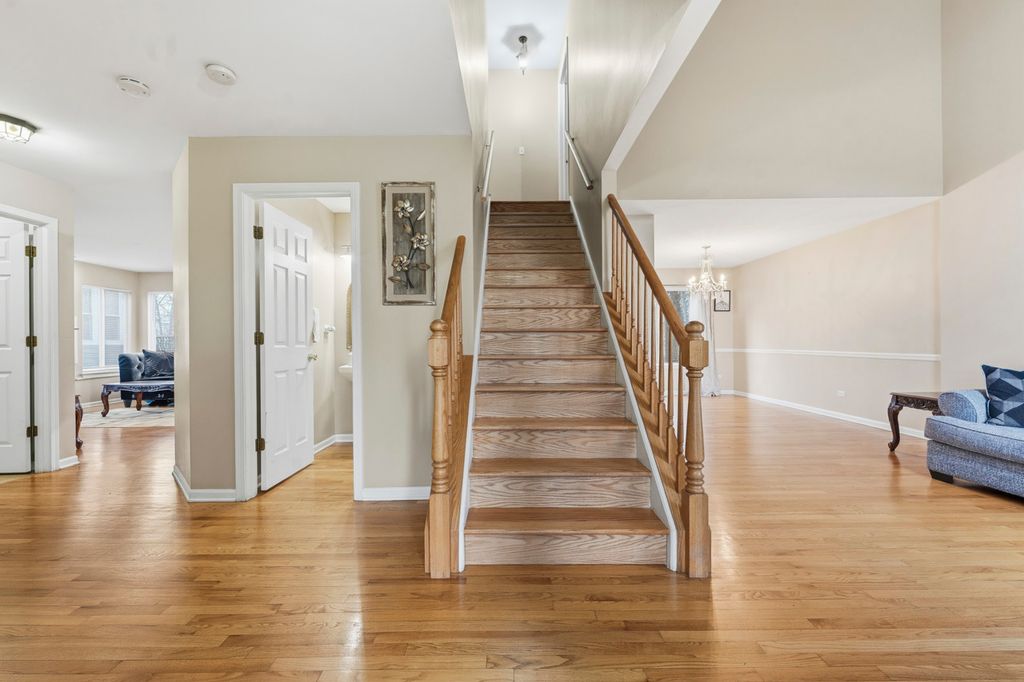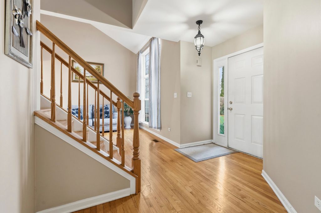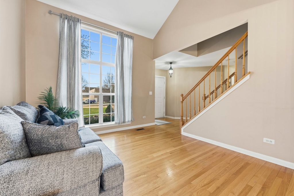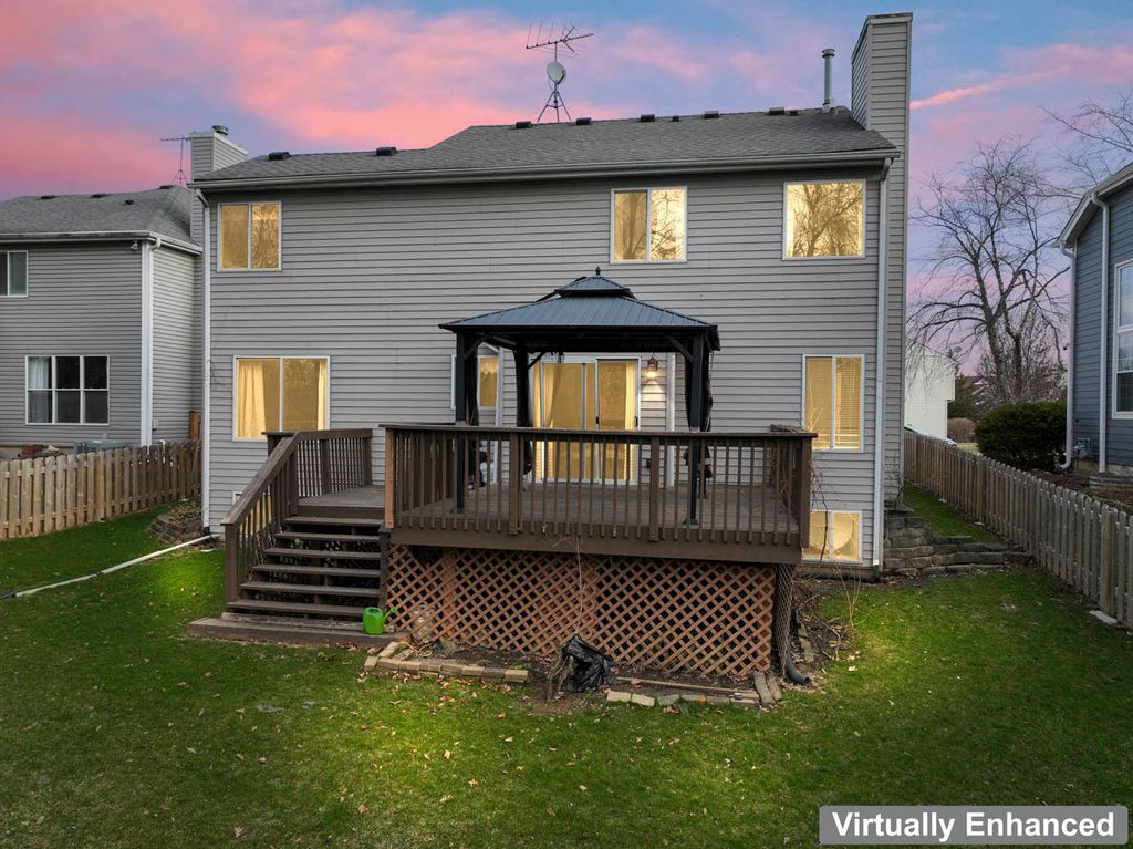 Fabulous home-one you'll truly want to call your own! This 4-bedroom, 2.1-bath home with a fully finished lookout basement backs to a private forest preserve, offering both privacy and beautiful views. From the moment you walk in, you're greeted by stunning vaulted ceilings and an abundance of natural light pouring through large windows in the living and dining rooms, complemented by hardwood floors that carry through much of the main level and upstairs. The primary suite featuring a large window overlooking the forest, filling the room with natural light, along with a private bath with separate tub and shower. The spacious layout includes a guest bedroom with a walk-in closet, and a eat-in kitchen is equipped with stainless steel appliances and opens seamlessly to a cozy family room with a fireplace, perfect for everyday living and entertaining. The finished English basement offers a huge rec room, game area, plenty of storage, and windows that bring in great natural light. Additional highlights include a beautifully updated full bath, convenient first-floor laundry, additional hardwood flooring upstairs and 2 car attached garage. Step outside to a large deck surrounded by mature trees, ideal for morning coffee or relaxing evenings. This one checks all the boxes-don't miss it! Contact co listing broker, for any questions!!