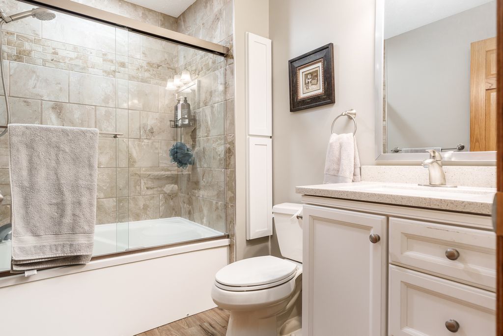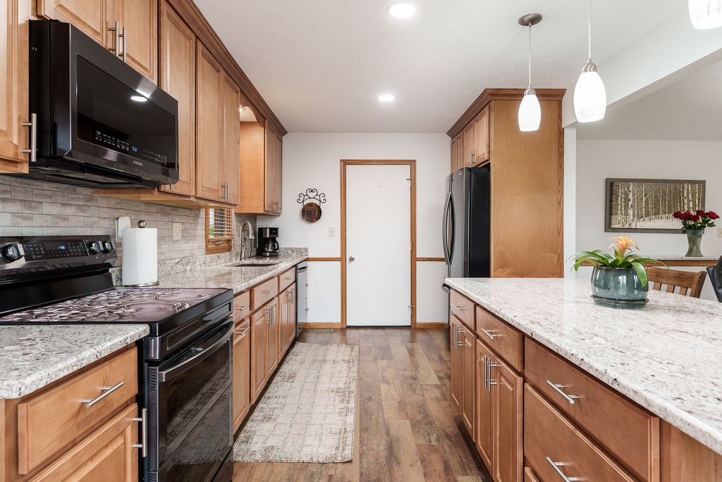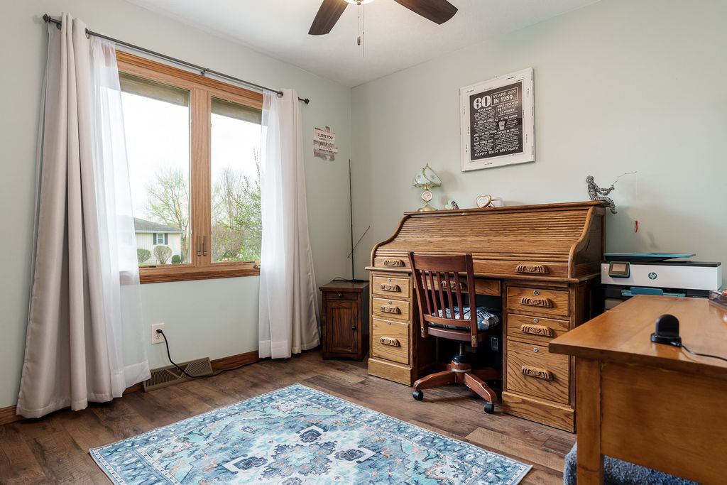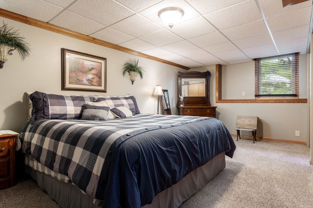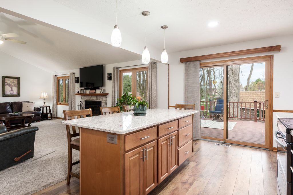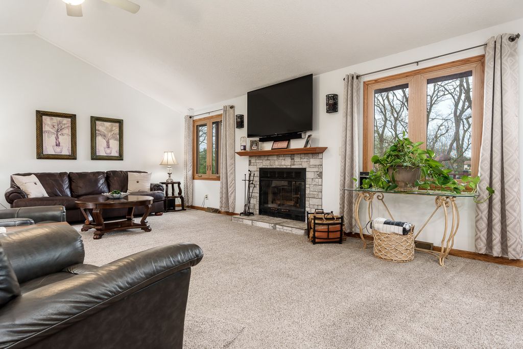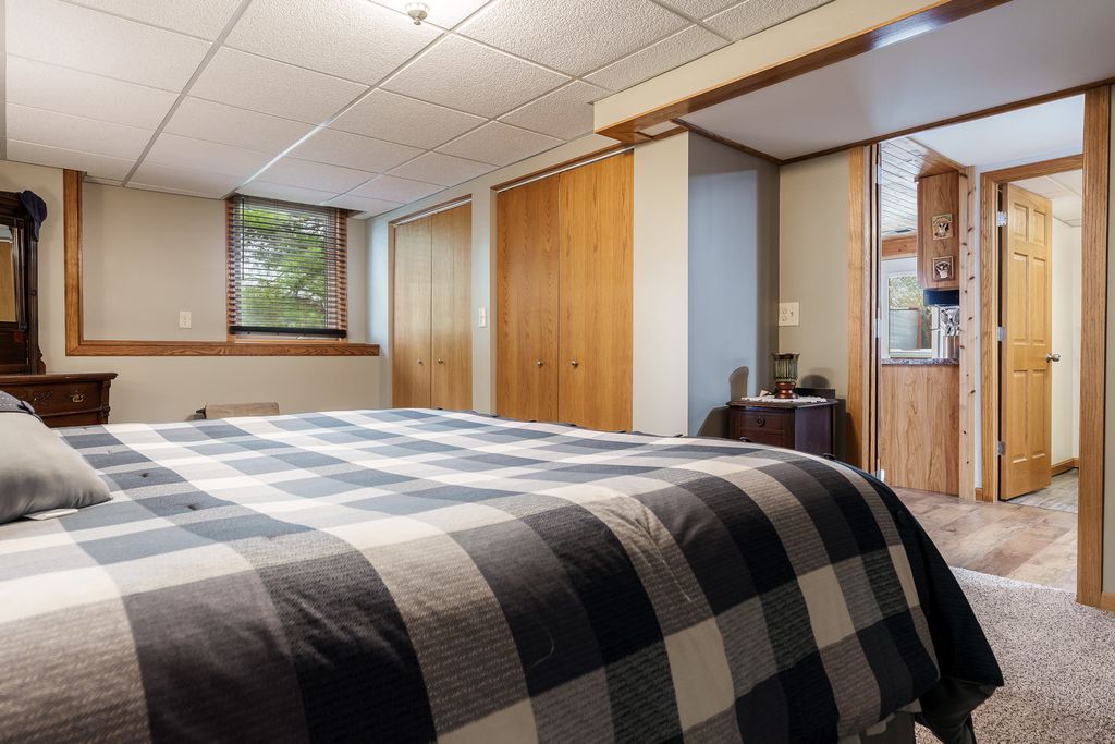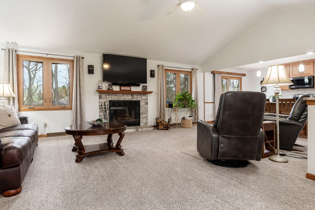 Beautifully updated ranch in Roscoe on a spacious corner lot! The stylish kitchen features granite, an oversized island, stainless appliances, and soft-close cabinetry and opens to a large deck and beautiful yard. Enjoy a warm, inviting living room with wood-burning fireplace. Main floor offers laundry and a serene primary suite with spa-like bath and Jacuzzi tub as well as two additional spacious bedrooms. Finished lower level includes a second kitchen, enormous 4th bedroom, and private hot tub with multi-level deck access. Extra 1 car garage in back, great storage throughout! Recent updates include but are not limited to- 200 amp service 2023, Second Garage 2019, Roof 2023, HVAC 2023, 50 Gal water heater with heat pump 2023, Deck freshly stained 2026, main floor windows replaced with Kobyko (lifetime warranty), Primary en-suite remodeled with addition of jacuzzi tub, Lower level finished with rec room-second kitchen and 4th bedroom, Main level kitchen fully remodeled.