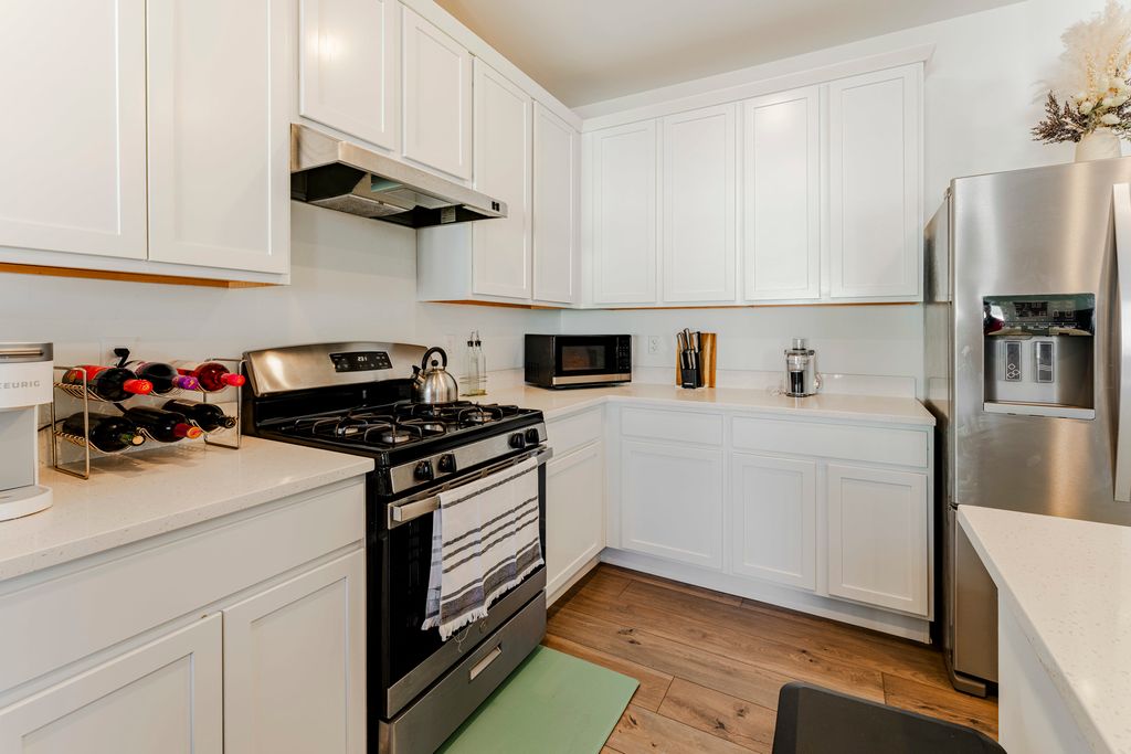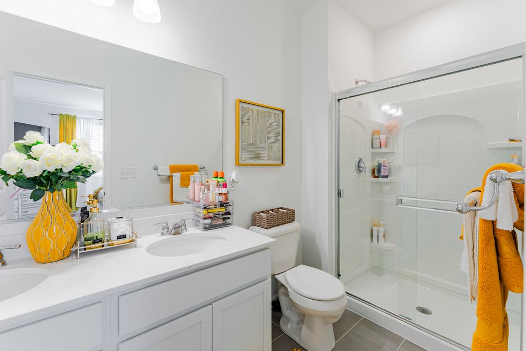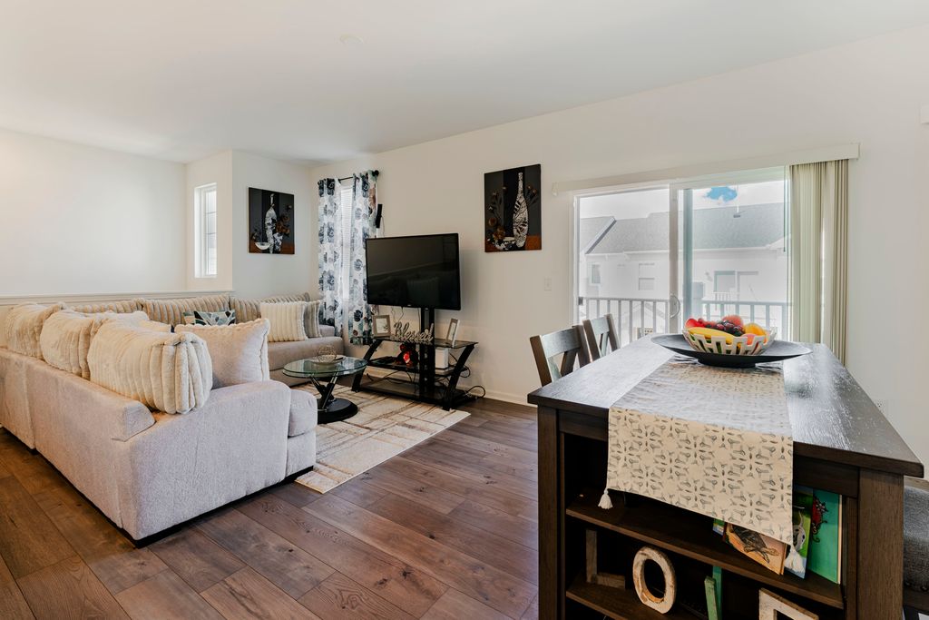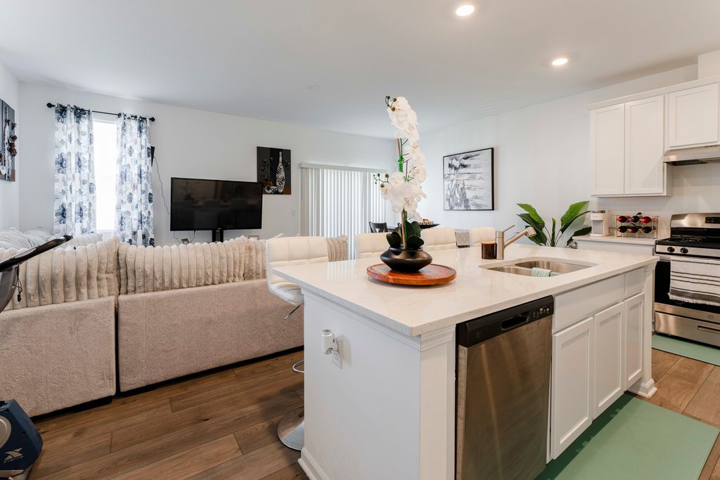 Stunning newer-construction 2-story townhome, built just 3 years ago, offering modern design, upscale finishes, and effortless living. Featuring 3 spacious bedrooms, 3 full bathrooms, a private second-floor deck, and an attached 2-car garage, this home delivers both style and functionality in a like-new condition. Step into a welcoming foyer that leads to a versatile main-level bedroom and full bath, ideal for guests, a private office, or an in-law suite. The first floor also includes a dedicated laundry room, ample storage, and direct access to the attached garage. The second level showcases a beautifully designed open-concept living space, perfect for entertaining and everyday comfort. The contemporary kitchen features a large island, sleek finishes, and modern cabinetry, flowing seamlessly into a bright and spacious family room. Step out onto your private deck-perfect for relaxing or hosting. The primary suite offers a luxurious retreat with a spa-inspired en-suite bathroom featuring a dual-sink vanity and elegant finishes. An additional bedroom and full bath complete the upper level, providing comfort and flexibility. Built with modern living in mind and meticulously maintained, this home offers the benefits of new construction without the wait. A rare opportunity to own a move-in-ready, newer home that combines sophistication, convenience, and lasting value.
