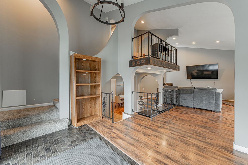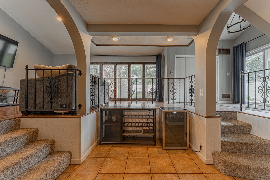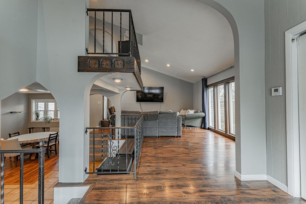 This tri-level home broke the mold with its unique architectural layout and updates, designed for both comfort and entertaining. The lower level offers a bedroom with new LVP flooring, a spacious updated kitchen with plenty of storage, adjacent dining room full of windows featuring deep sills perfect for housing your plants, and a half bath/laundry room combo. Take just a few steps up from the kitchen into the large living room addition which features cathedral ceilings, several floor to ceiling windows encased in intricate woodwork, and sliders out to the large, fenced backyard with a newer stamped concrete patio - your own private retreat! Overlooking the living room is the coziest indoor balcony with the same intricate woodwork that makes the perfect reading nook, and leads into the primary bedroom on the upper level. Two more bedrooms and a full hall bath round out the rest of the upper level. Don't miss out on this absolutely unique property; schedule your showing before it's too late! Home sold as presented.