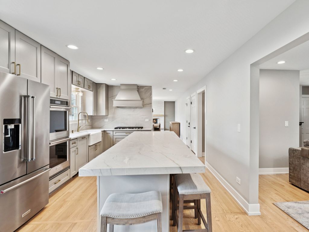 The one you've been waiting for-welcome to this stunning, fully remodeled 4-bedroom, 4-bathroom colonial tucked away on a quiet cul-de-sac street in the award-winning Glenbrook North school district. Completely gutted and reimagined in 2023, this move-in ready home showcases exceptional craftsmanship with no expense spared. At the heart of the home is a show-stopping custom kitchen featuring a massive 10-foot double-thick quartzite island with seating for six-perfect for entertaining. The dramatic full-height quartzite backsplash, double oven, and expansive counter space make hosting effortless. The kitchen flows seamlessly into a light-filled family room, creating the ideal layout. Designer touches continue throughout, including a striking powder room with gold wallpaper and a custom vanity. Upstairs, the luxurious primary suite offers a spa-like en-suite bathroom with a rain shower for ultimate relaxation. Convenient second-floor laundry and generously sized bedrooms complete the level. The finished basement is built for entertaining, featuring a custom wet bar with quartz countertops, and full cabinetry, along with a full bathroom-perfect for guests. Step outside to enjoy the large, fully fenced backyard with a spacious deck- ideal for summer gatherings. Electrical, Plumbing, HVAC all updated with renovation. New 6 foot vinyl fence. Sprinkler system. Seller is a Licensed Illinois Real Estate Managing Broker.