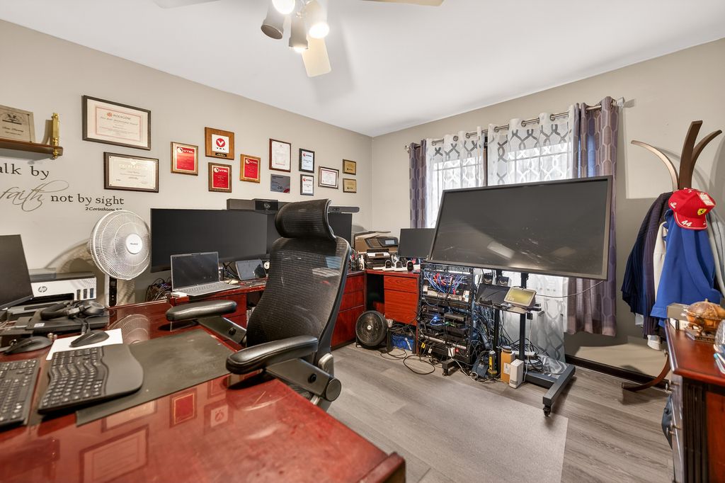Looking for a home that truly has it all? Whether you love hosting family gatherings or prefer to enjoy all your entertainment without ever leaving home, look no further than 0S775 Madison St, perfectly situated in the heart of Winfield. Conveniently located near Central DuPage Hospital and just across from Cantigny Park, this five-bedroom, three-and-a-half-bath home with a three-car garage delivers on the golden rule of real estate - location, location, location! The living room/den/office features a large window that fills the space with abundant natural light - a theme carried throughout the entire home. The dining room shines with even more sunlight, enhanced by French glass doors that open to the wraparound porch and French pocket doors that lead to the cozy family room. The kitchen is both stylish and functional, boasting sleek black granite countertops (installed just five years ago), stainless steel appliances, and a built-in wine fridge. Enjoy cooking on the electric stove-and-oven combination, paired with a separate double wall oven. Surround sound & mood lighting create the perfect ambiance. The kitchen also features a pantry & a lovely eating area, giving the home an open and connected feel as it flows effortlessly into the family room. After a long day, unwind with a drink from the wet bar & cozy up by the gas and wood-burning fireplace. French glass doors open to reveal beautiful views of the property, allowing natural light to pour in and create a bright, welcoming atmosphere. Upstairs, you'll find five spacious bedrooms and two full bathrooms. The addition over the garage is an impressive feature - a 600-square-foot space complete with its own air conditioning and furnace. Currently home to the laundry area, this versatile space is thoughtfully designed with plumbing access ready should you wish to add another bathroom in the future. All plumbing is protected by a sister wall, ensuring your pipes stay safe.. Vaulted ceilings & a grand picture window allow natural light to flood the addition while offering serene views of Cantigny Park - creating a true oasis within the home. The primary bedroom is generously sized and leads to an ensuite straight out of a dream. Slide open the barn door to reveal pure comfort & style - heated flooring, a sit-down vanity with built-in outlets, and deep-set, anti-fog mirrored cabinets that bring together beauty and functionality. The walk-in closet features custom shelving & organizers to keep your space efficient and tidy. When it's time to unwind, indulge in the jacuzzi tub with its own dedicated water heater, surrounded by the glow of an electric fireplace and soothing surround sound - your very own spa retreat. The walk-in shower is equally impressive, offering a multi-setting shower panel, built-in seat, dual wall niches, and soap dispensers - all supported by plumbing safely enclosed within a sister wall. The finished basement is an entertainer's dream, complete with a movie theater, full bathroom, poker table, bar, & a pool table. Movie nights are elevated with a retractable 140-inch screen, full audio system, and comfortable seating that makes every viewing feel like an event. Heading into the backyard, prepare to fall in love with a true outdoor sanctuary. The brick patio bar offers granite countertops, a sink, natural-gas-attached grill, and smoker - perfect for summer cookouts or weekend gatherings. Unwind in the hot tub or soak up the sun on the chaise lounges. The outdoor surround sound system enhances every moment, whether you're hosting, relaxing, or enjoying the peaceful view. This home also includes a variety of valuable upgrades & modern conveniences: whole-house audio, a touch-panel audio system, a new 2025 AC unit and furnace, roof only eight years old. 2025 sump pump with backup battery, a new ejector pump, and a whole-house dehumidifier and humidifier.