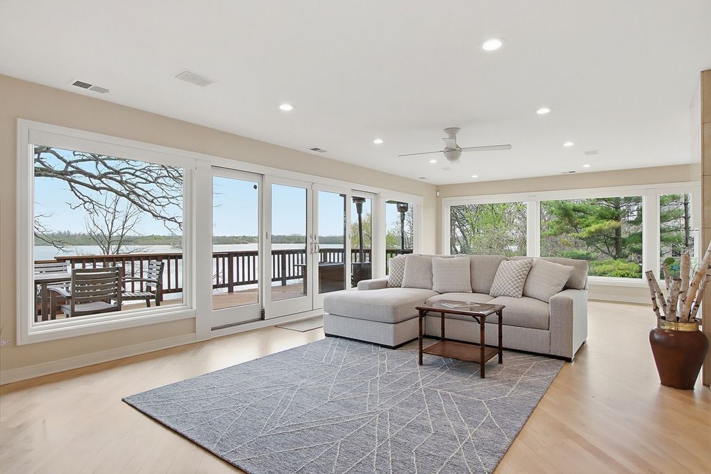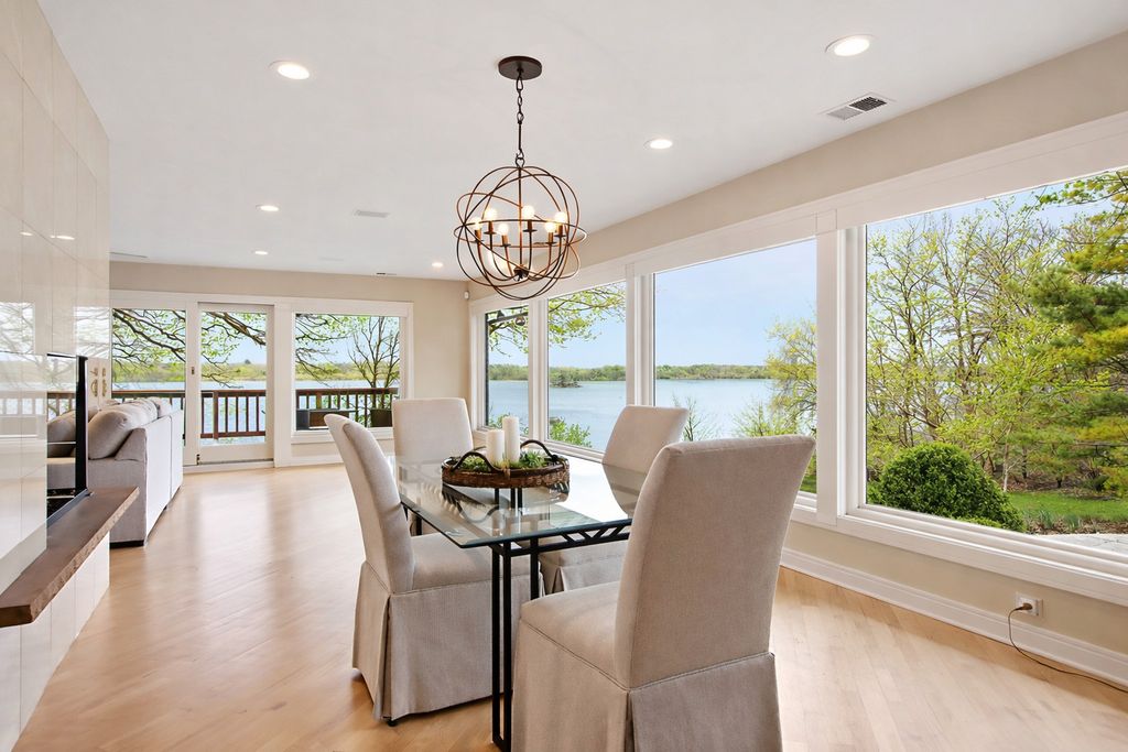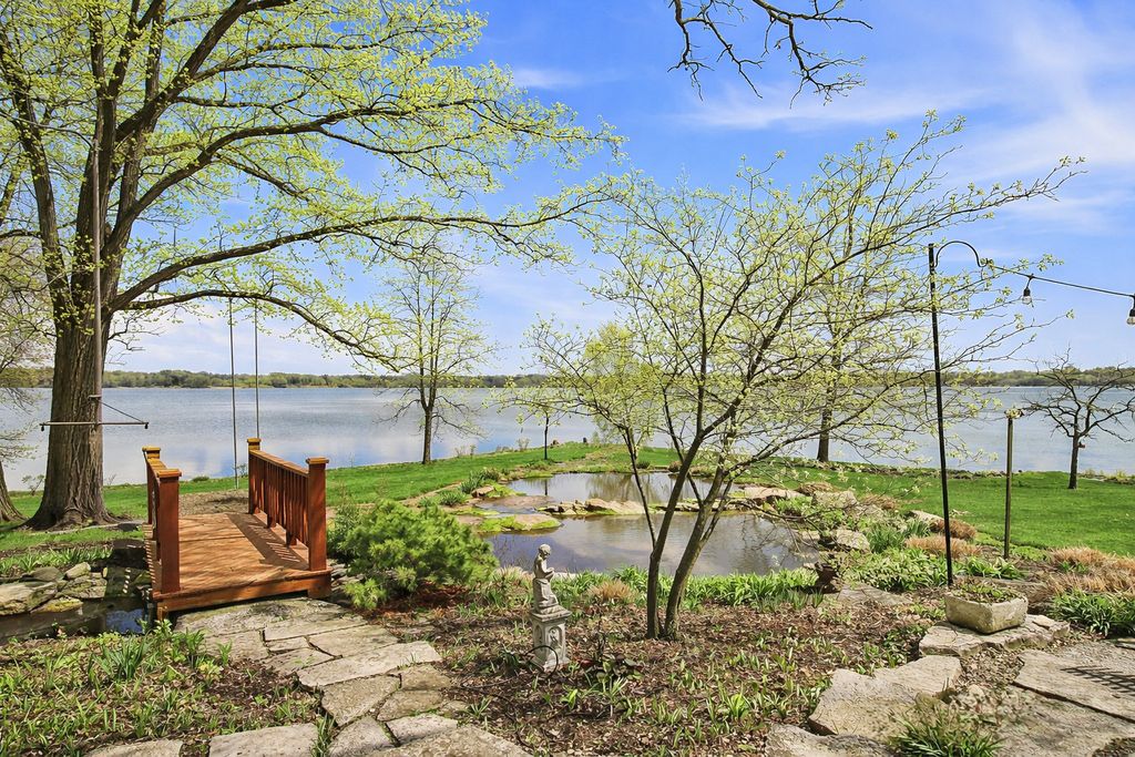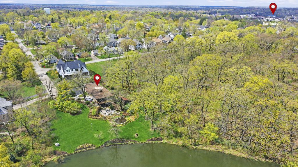 Looking for a mid-century ranch with million dollar views? Welcome to your own private lakefront retreat on beautiful Baker's Lake offering breathtaking water views and unmatched walk to town convenience. Situated on a premium half acre hillside lot, this walkout ranch combines privacy, nature, and everyday accessibility in one of Barrington's most desirable locations. This 3 bedroom, 2.1 bath home features a fully finished walk out basement and three fireplaces that create warm and inviting living spaces throughout. Hardwood floors span the main level, and a screened porch provides the perfect place to enjoy serene lake views in every season. The outdoor setting is truly exceptional. Professionally landscaped grounds include a stone patio with firepit, a tranquil koi pond, and two expansive decks designed to maximize the panoramic water views. This is a rare opportunity to experience true indoor outdoor living with a peaceful, private backdrop. Additional highlights include a heated 2.5 car garage with epoxy floors, generous storage throughout, and flexible living space with potential for an in law suite or guest retreat. Located just a short walk to downtown Barrington, Metra, shopping, dining, and top rated schools, this home offers the best of lakefront living with in-town convenience. A rare opportunity to own a waterfront home in Barrington with privacy, views, and an unbeatable location.