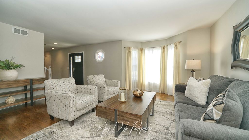 Absolutely Pristine Home in Sought-After Midlane Country Club Estates! This stunning home is truly move-in ready with EVERYTHING updated-yes, practically NEW from top to bottom! Step into the welcoming foyer, where to your left you'll find a spacious living room featuring gleaming hardwood floors, beautiful bay windows, and the home's one charming original detail-the classic porthole window. Entertain in style in the formal dining room with rich hardwood flooring and an elegant light fixture. The gorgeous kitchen boasts quartz countertops, 42" white cabinetry, and opens seamlessly into the expansive family room with a cozy gas fireplace. The main level also offers a stylish powder room and sliding doors leading to the patio-perfect for indoor/outdoor living. Upstairs, the luxurious primary suite features updated lighting, a walk-in closet, and a completely remodeled, reconfigured private bath with an oversized shower and double vanity. BRAND NEW CARPET - Just over A Week old! Three additional generously sized bedrooms offer ample closet space, along with a beautifully remodeled hall bath (2016). The finished basement adds even more living space with durable Laminate flooring, recessed lighting, an electric fireplace, PLUS wiring for surround sound-ideal for movie nights or game day gatherings. Outside, enjoy summer evenings on the paved patio-perfect for grilling and relaxing. A convenient storage shed adds even more functionality. This home shines with pride of ownership and stylish updates throughout-don't miss your chance to make it yours!